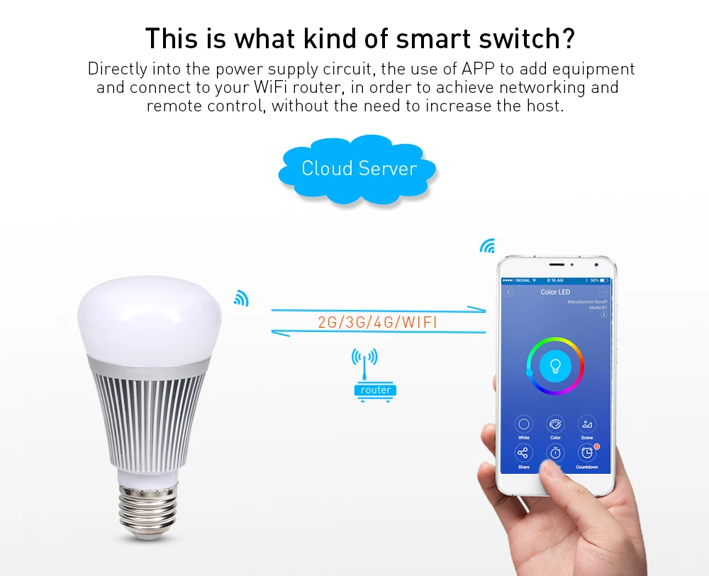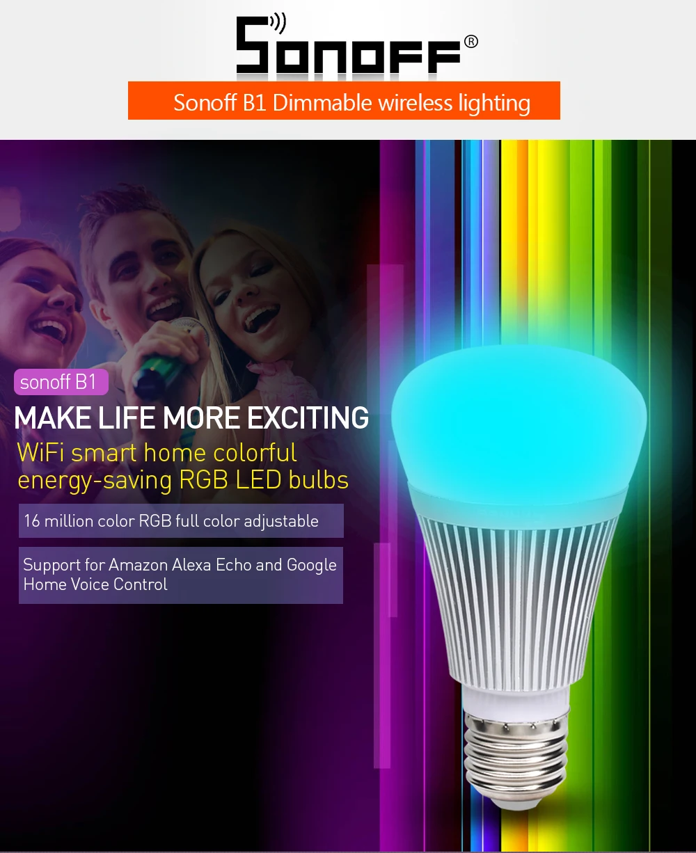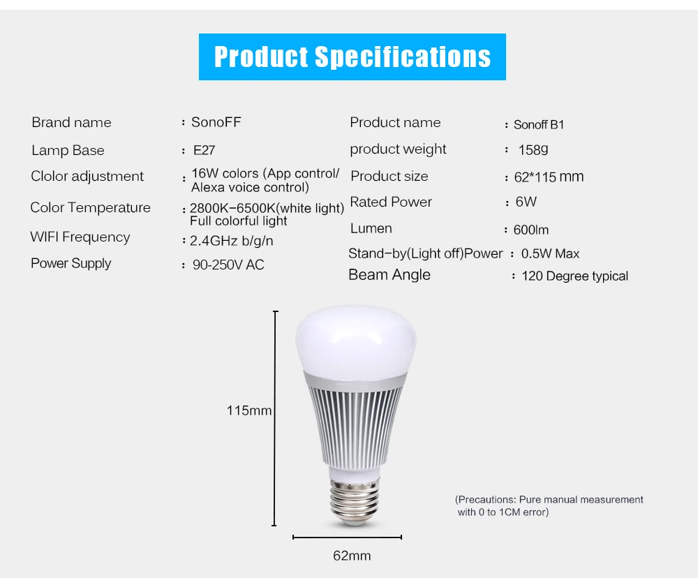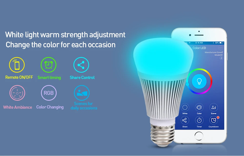 Sonoff B1 Wifi Dimmer Led Bulb E27 6W Smart Home App Remote Wireless Control White and Color Ambiance Lamp Works With Alexa