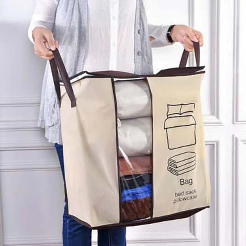 IVYSHION 2018 Non-woven Portable Clothes Storage Bag Organizer 45.5*51*28cm Folding Closet Organizer For Pillow Quilt Blanket