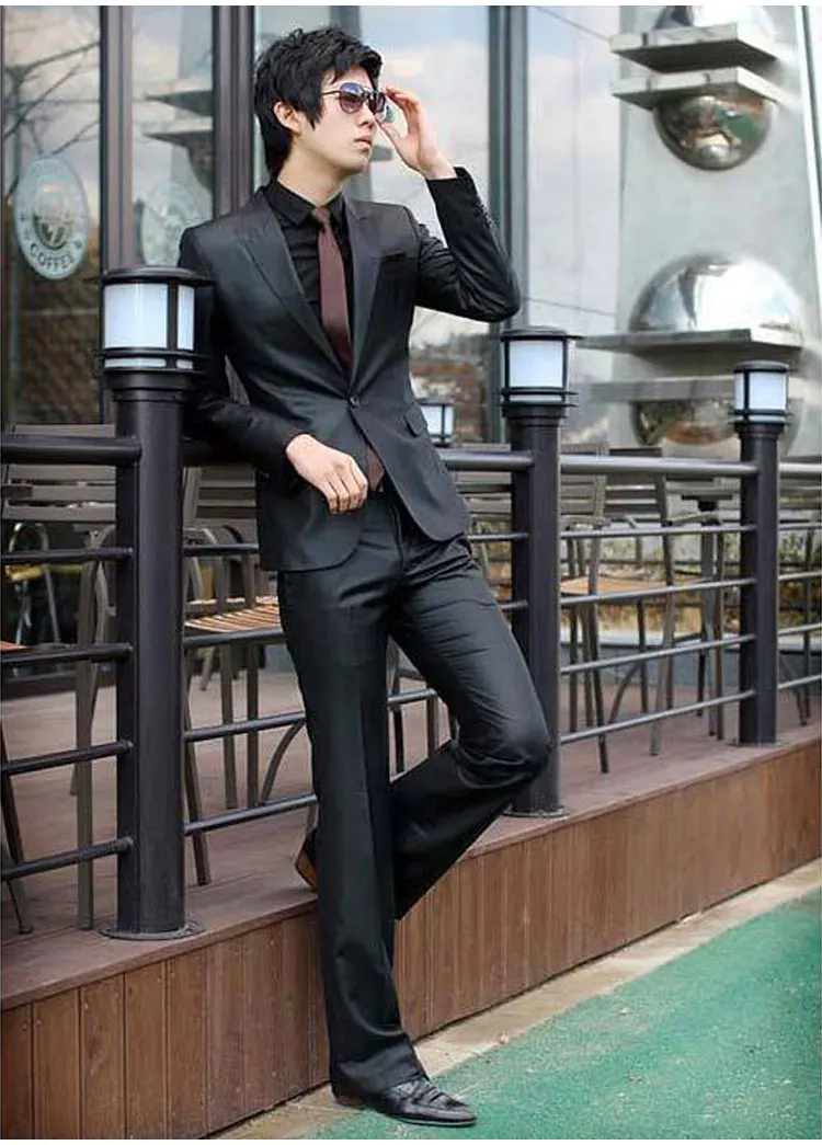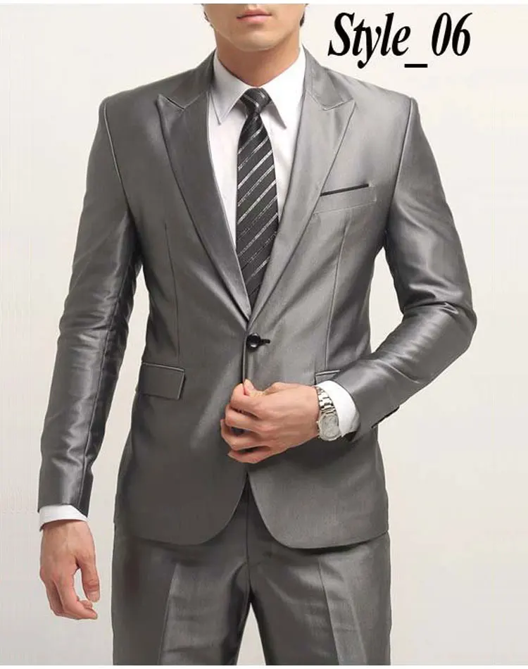 (Jacket+Pant) Luxury Men Wedding Suit Man Blazers Slim Fit Suits For Men Costume Business Formal Party Sliver Classic Black