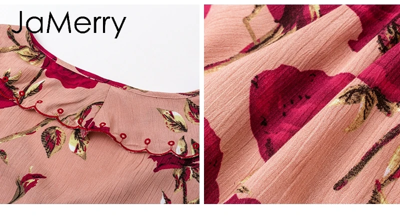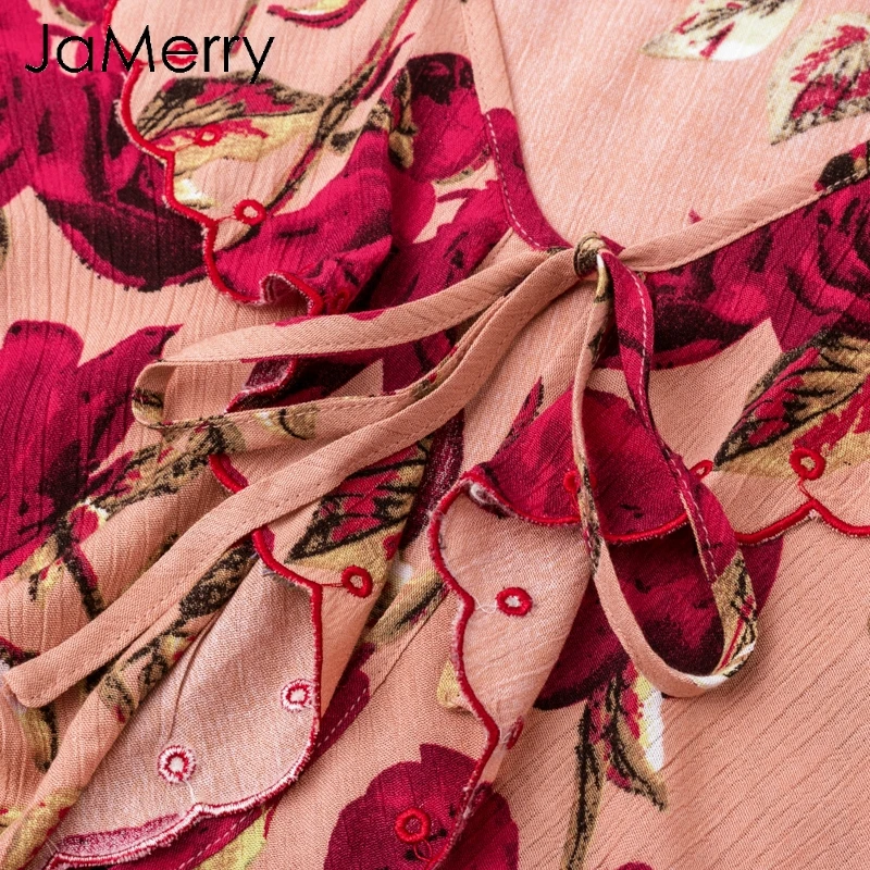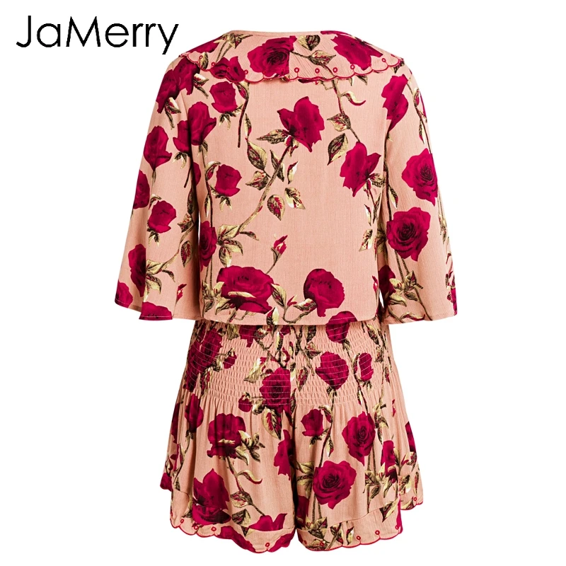 JaMerry Floral boho beach short romper jumpsuit Women two piece print jumpsuit female V neck ruffle summer playsuit macacao 2018