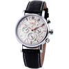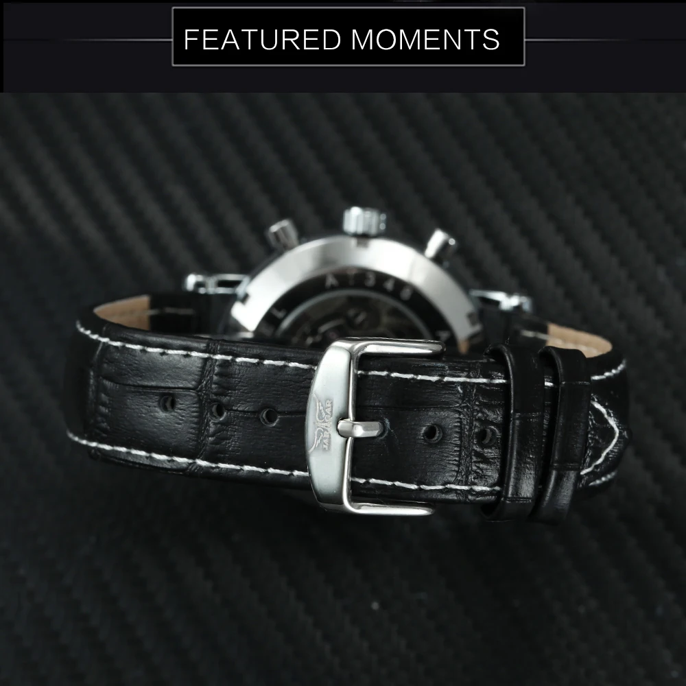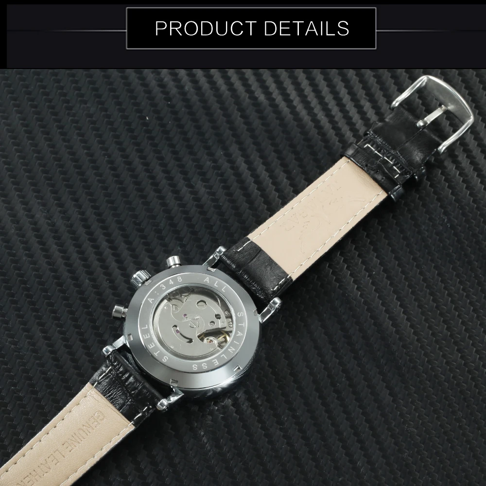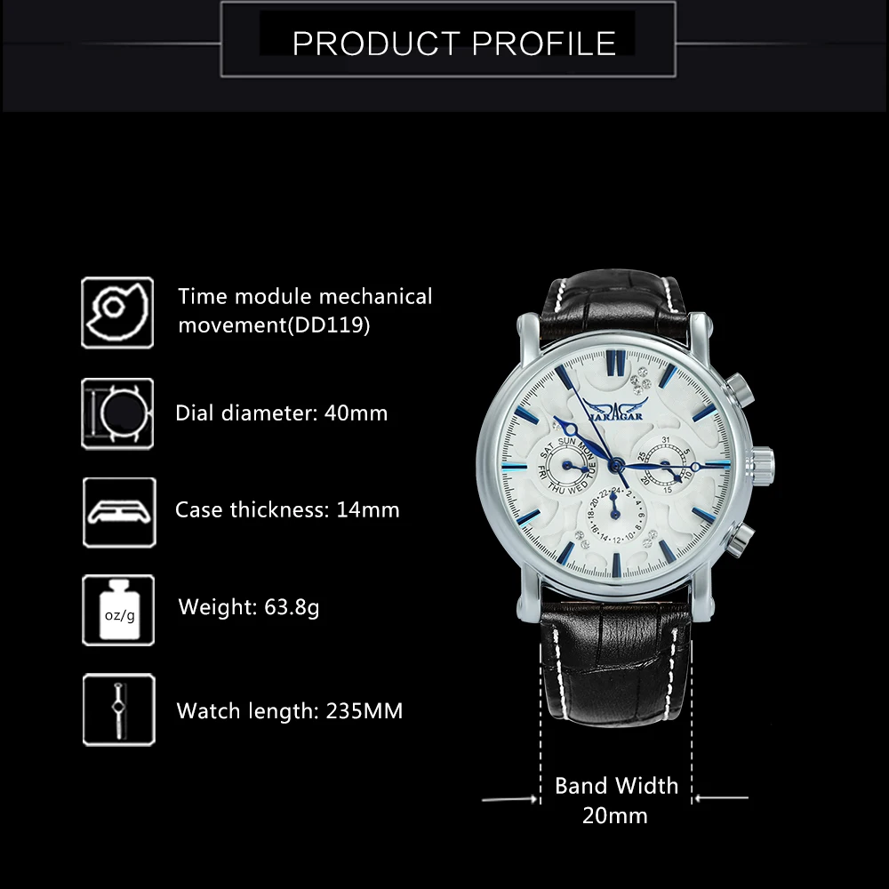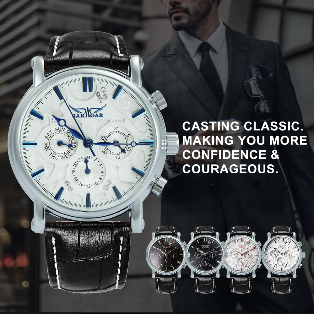 JARAGAR Top Brand Luxury Auto Mechanical Watch Men Leather Strap Ocean Blue 3 Dial 6 Hands Diamond Fashion Dress Wrist Watches