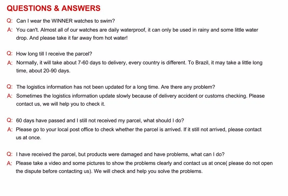 • If you did not receive the product within the guaranteed time( 45 days not including 2-5 day processing) you can request a refund or a reshipment.