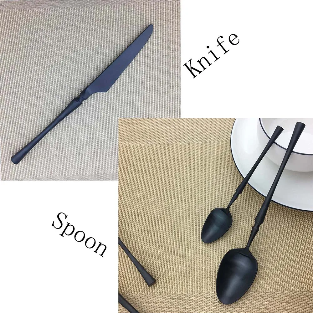 JASHII Matte Black Cutlery Set Stainless Steel Dinnerware Set Fork Knife Scoops Silverware Set Home Western Food Tableware Set