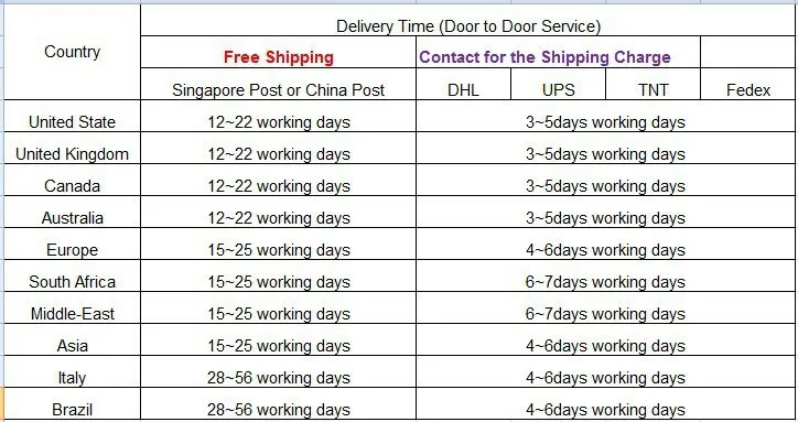 Please contact us for fast shipping,like DHL/UPS/TNT or Fedex,as well as the Airplane.