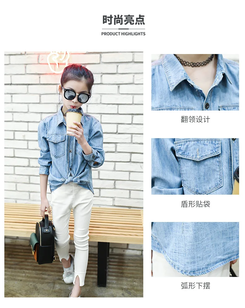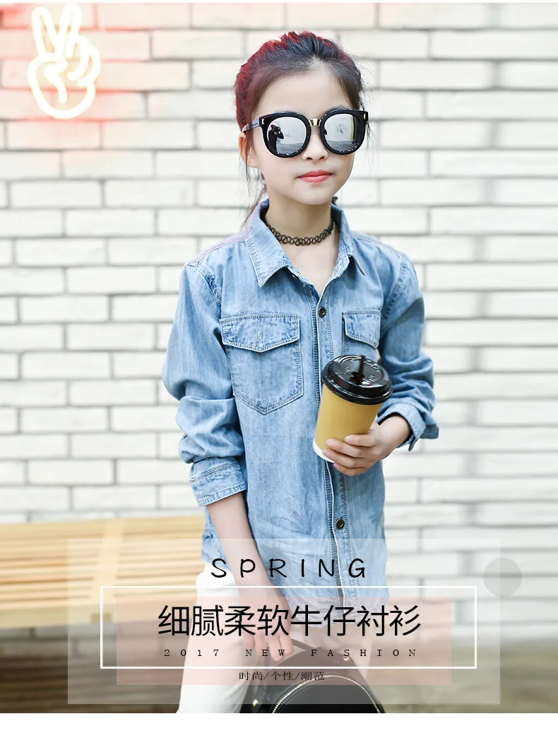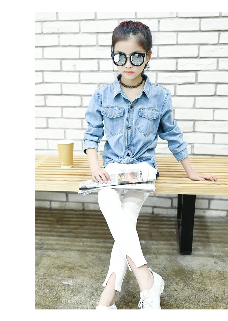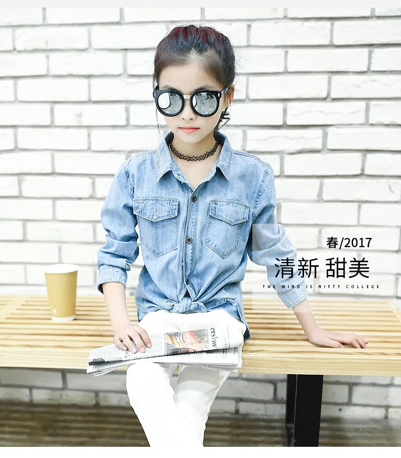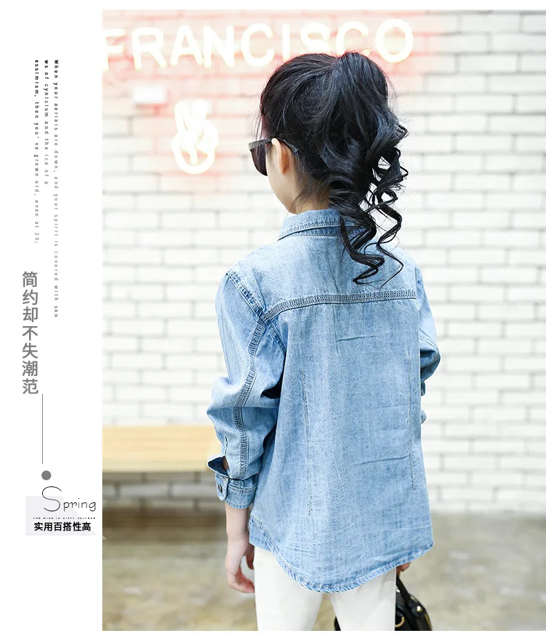 Jeans Shirts for Girls 2018 Spring Autumn Long Blue Pockets Cotton Teenage Baby Girl Denim Shirt Long Sleeve Coats Kids Clothes