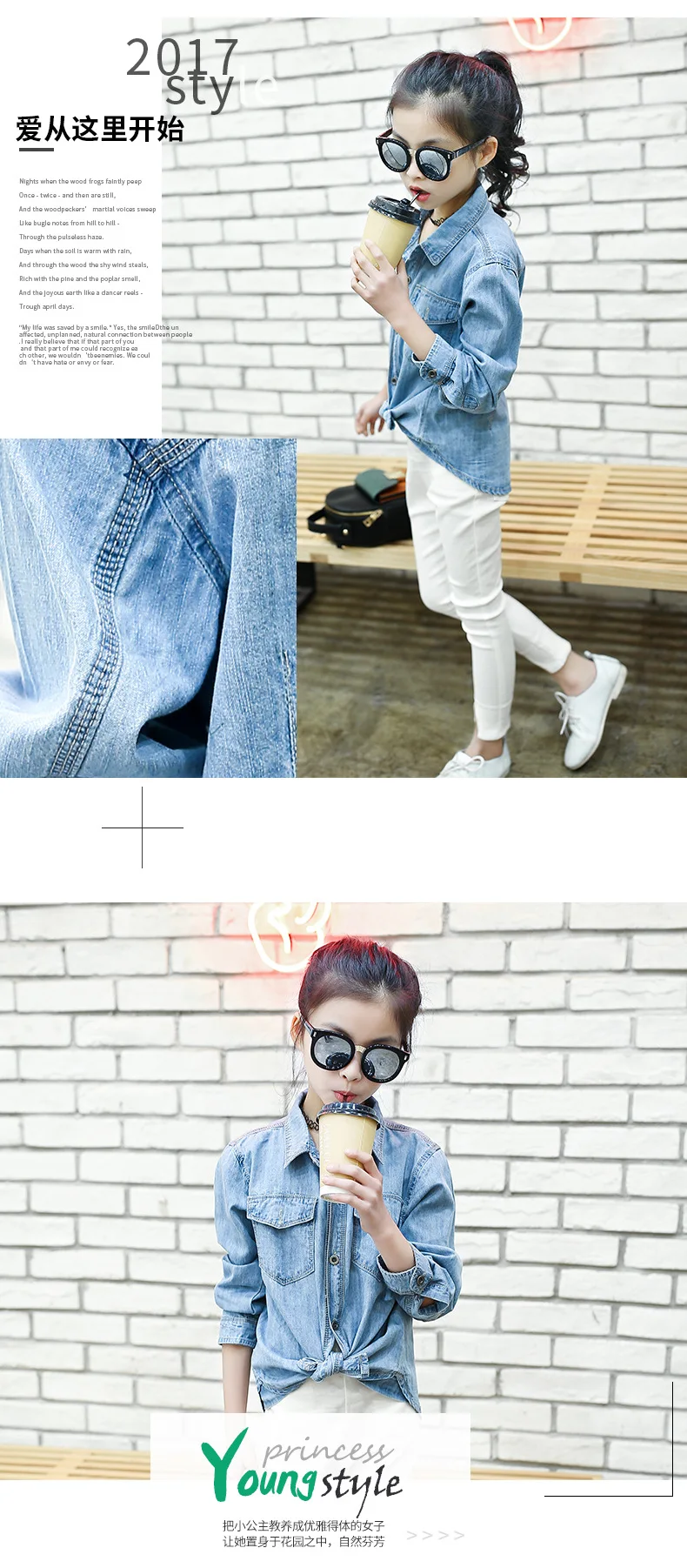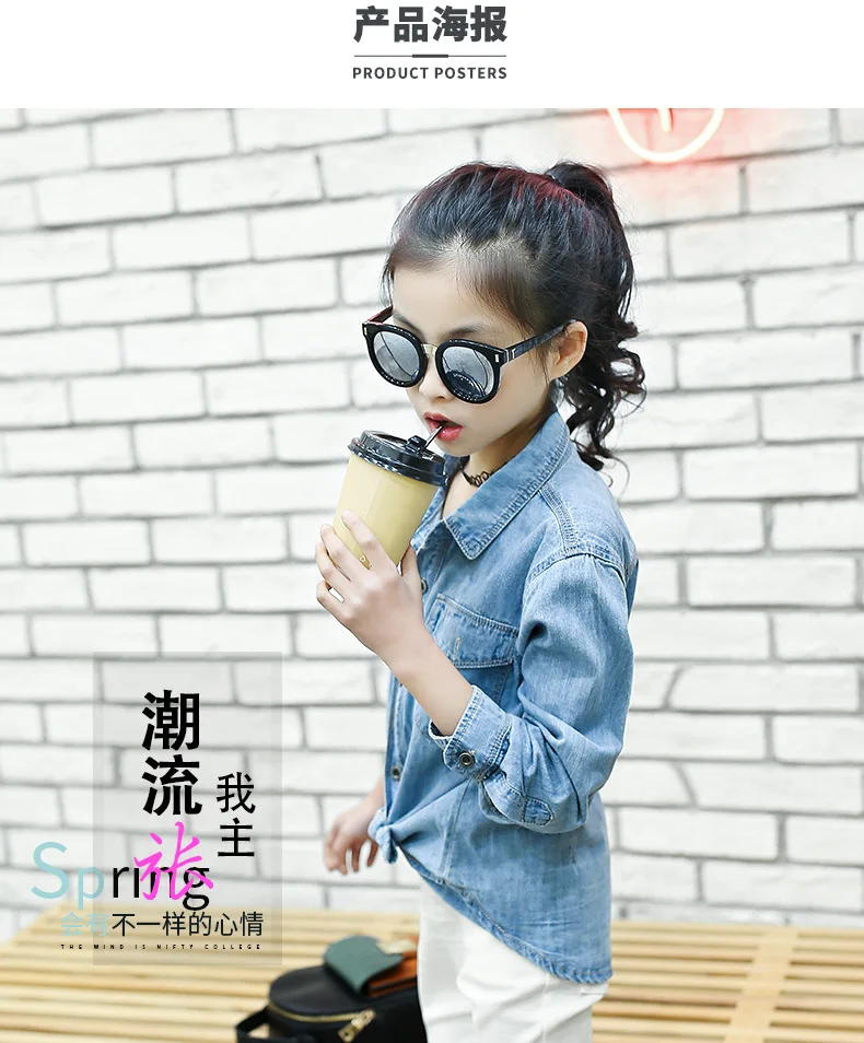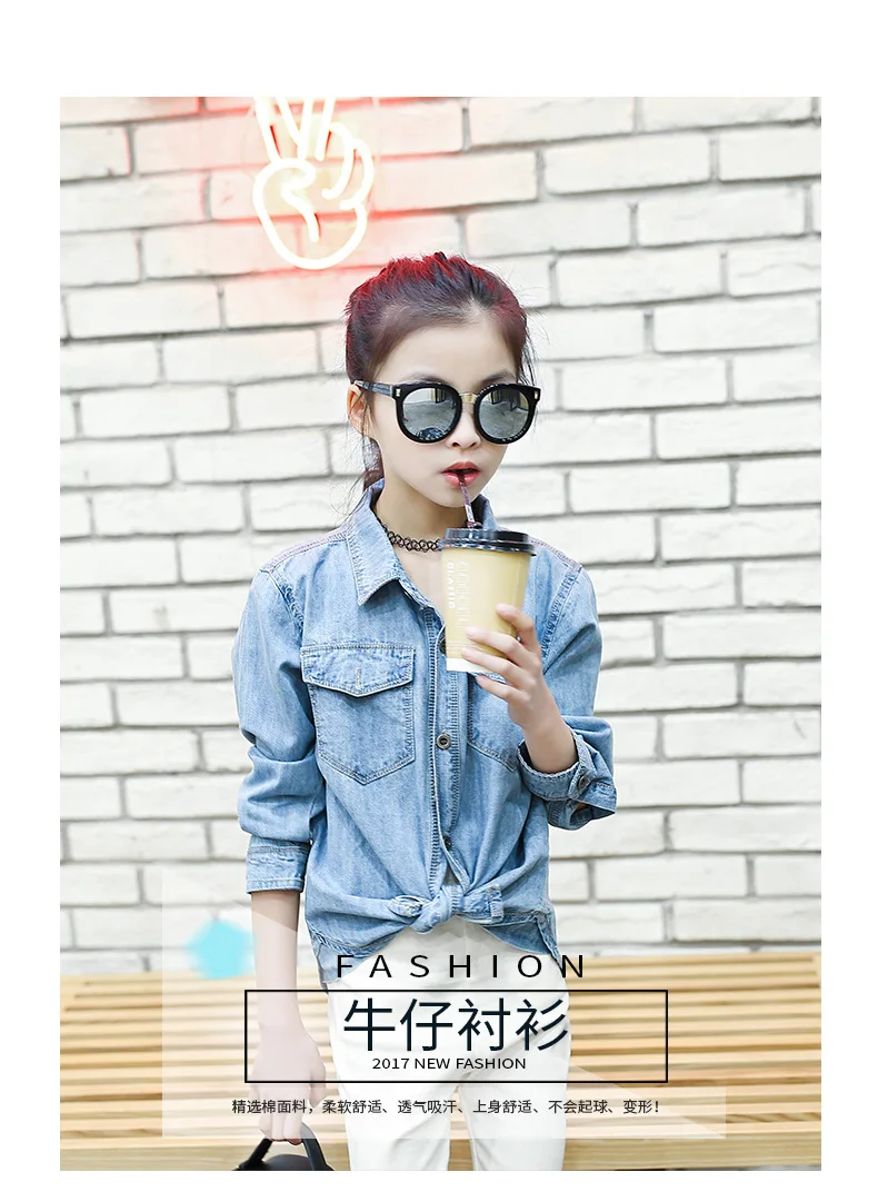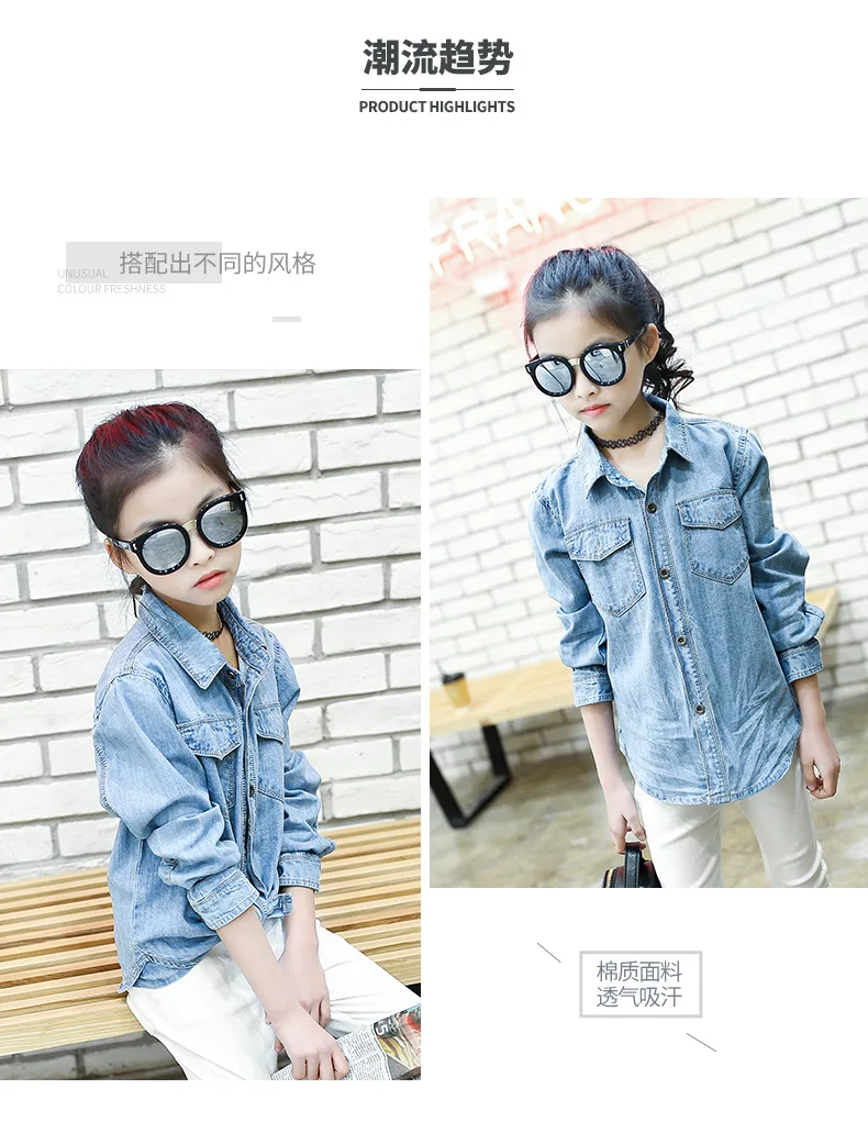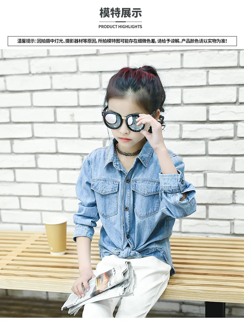 Jeans Shirts for Girls 2018 Spring Autumn Long Blue Pockets Cotton Teenage Baby Girl Denim Shirt Long Sleeve Coats Kids Clothes