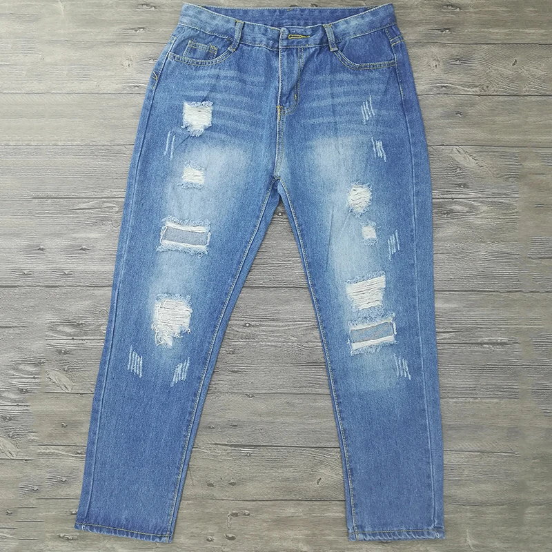 Jeans women high waist boyfriend Jeans mom New Ladies Cotton Denim Pants plus size RippedPencil Skinny Denim Jeans For Female