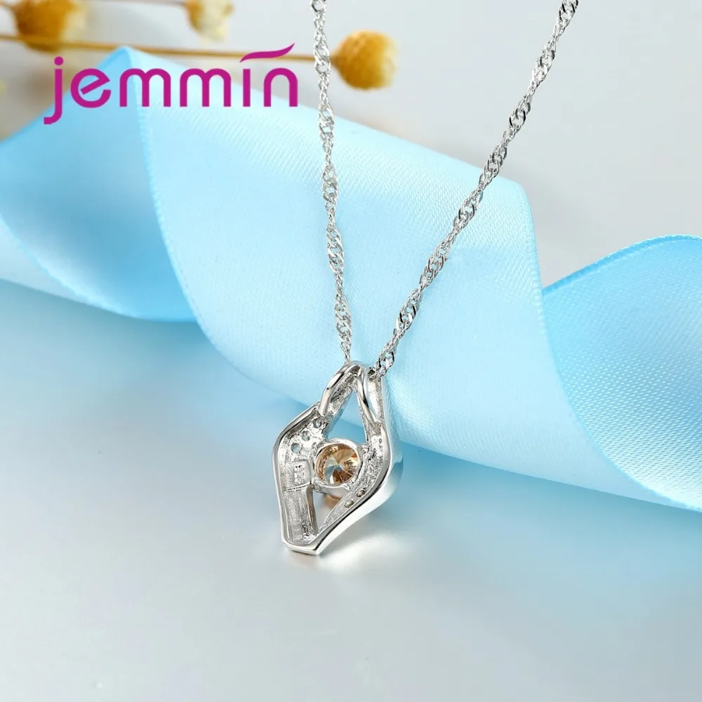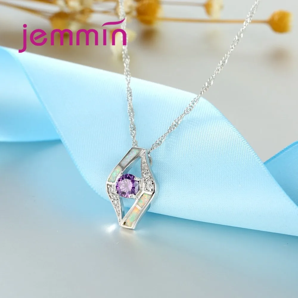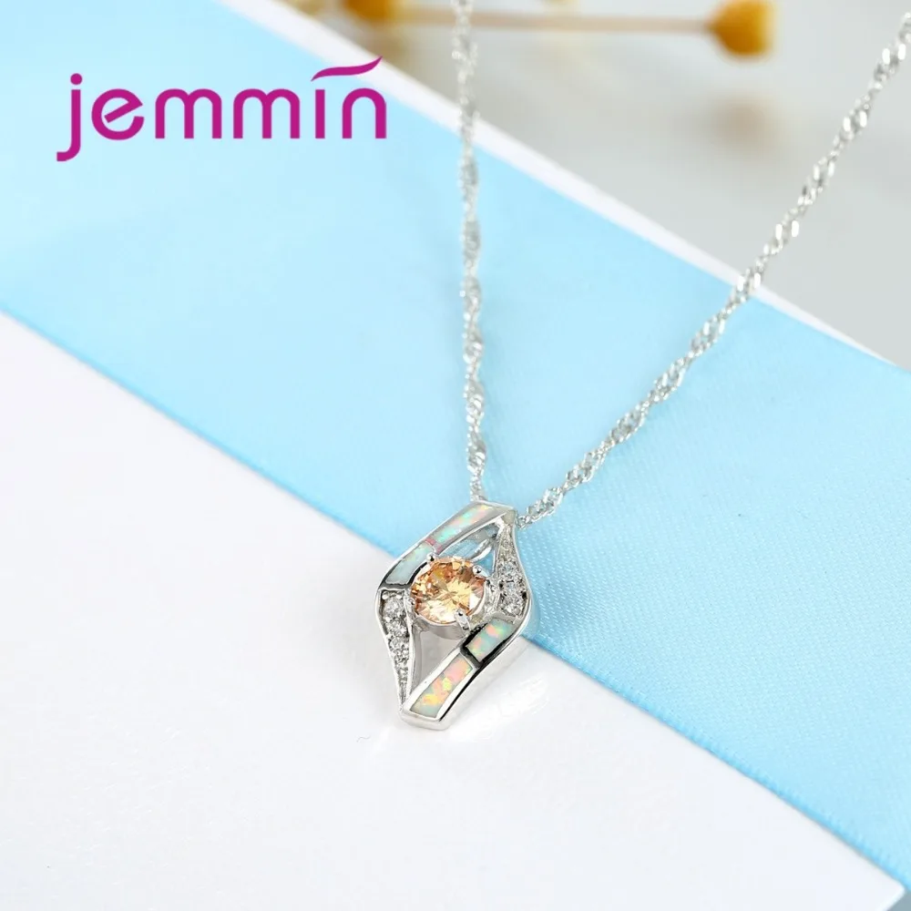 Jemmin 925 Sterling Silver White Opal Pendants Necklaces Fine Women Wedding Jewelry Crystal Rhinestone Necklace For Female