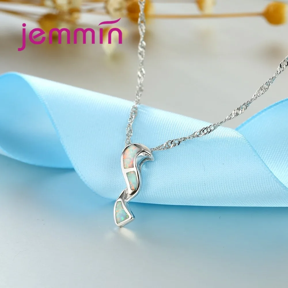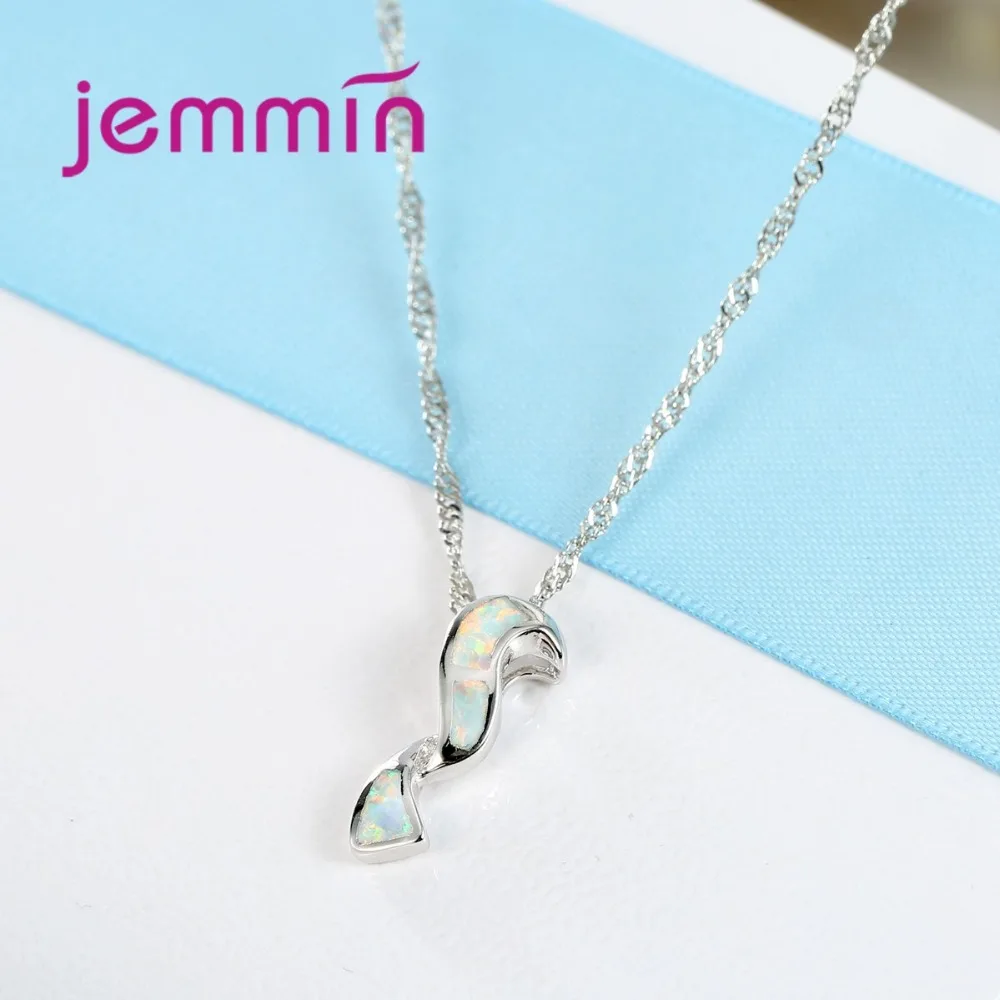 Jemmin Brand Geometric White Opal Pendants Necklaces For Women 925 Sterling Silver Party Necklace Birthday Party Best Gift