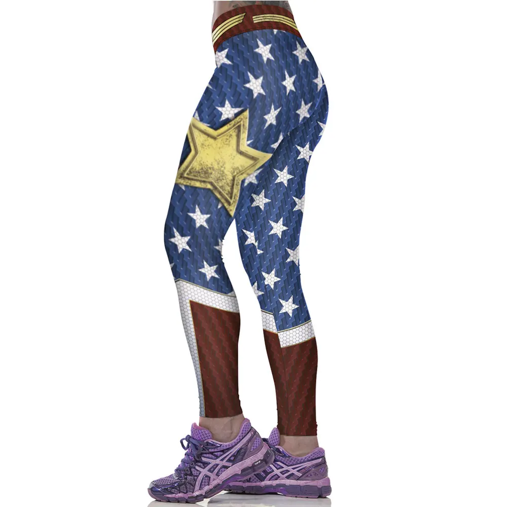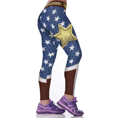 JESSINGSHOW Women Sport Leggings Fitness Skinny Running Gym Yaga Pants Wonder Women Stars Printed Bodybuilding Legging Leggins