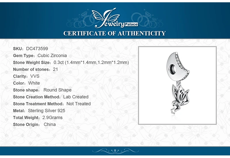 JewelryPalace 925 Sterling Silver Believe Fairy Charm Beads For Bracelets Trendy Gifts For Women/Girl Hot Sale Beautiful Jewelry