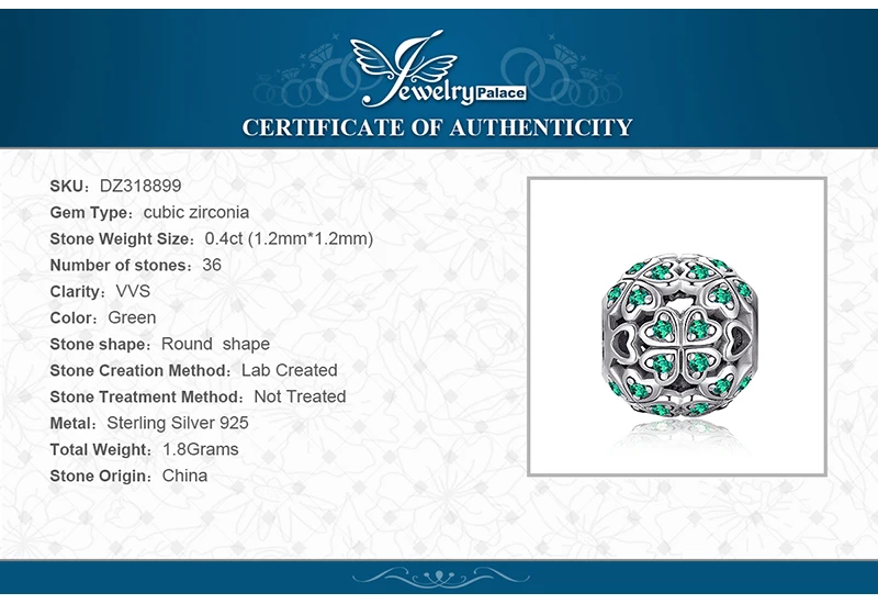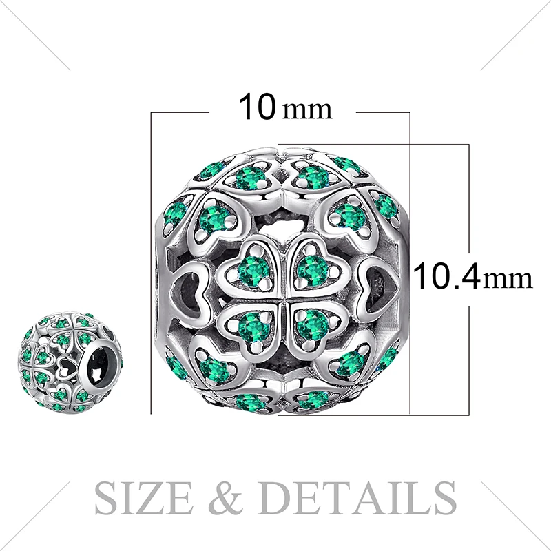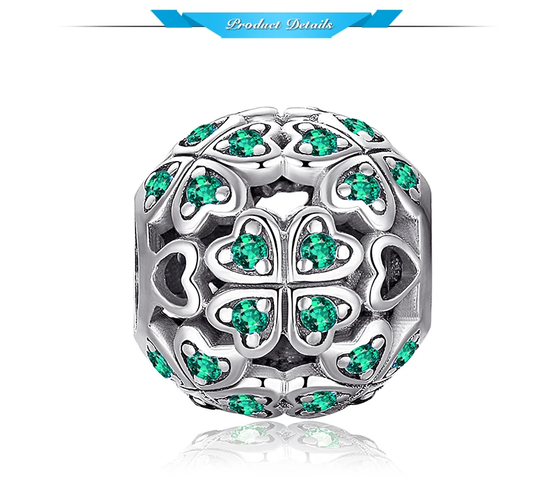 We need some luck sometimes to turn it over, this 925 sterling silver 4 leaf clover charm embellishing glitter green cubic zirconia to bring you the good luck.