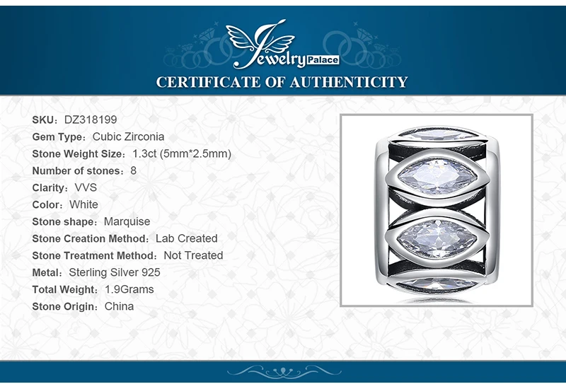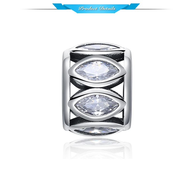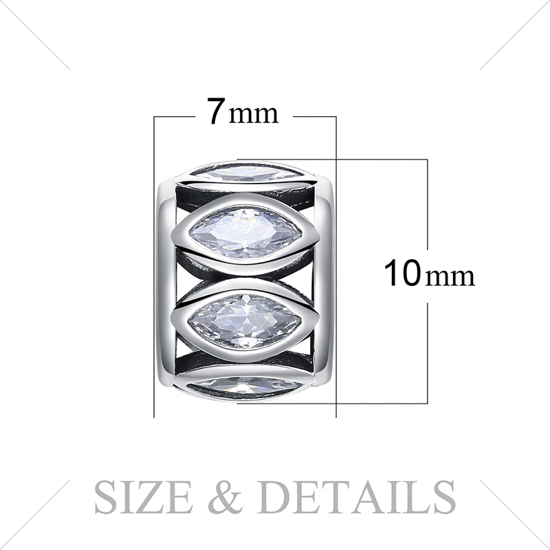 JewelryPalace 925 Sterling Silver Vintage Marquise Cut Cubic Zirconia Charm Beads Fit Bracelets For Women Fine Jewelry As Gift