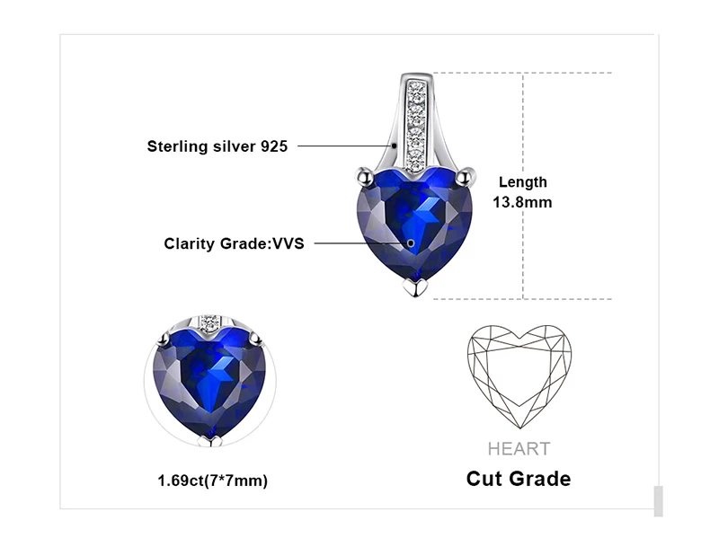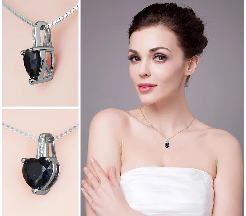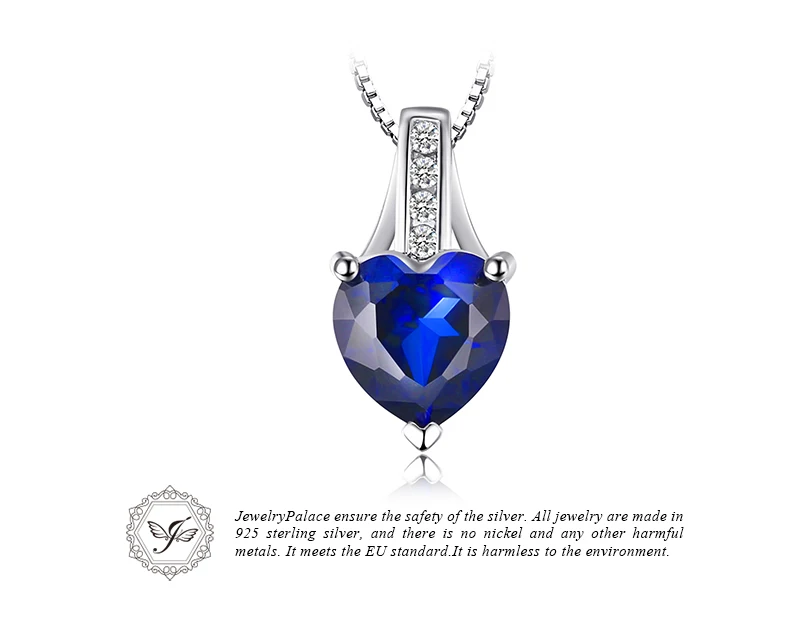 JewelryPalace Fashion 1.7 ct Created Blue Sapphire Heart Pendant Necklace For Woman 925 Sterling Silver Include a 45cm Chain
