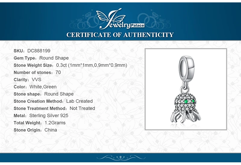 JewelryPalace Sea Love Octopus Cubic Zirconia 925 Sterling Silver Charm Beads For Women 2018 New Hot Sale Beautiful Gifts
