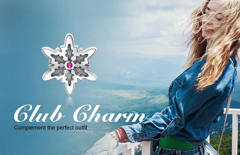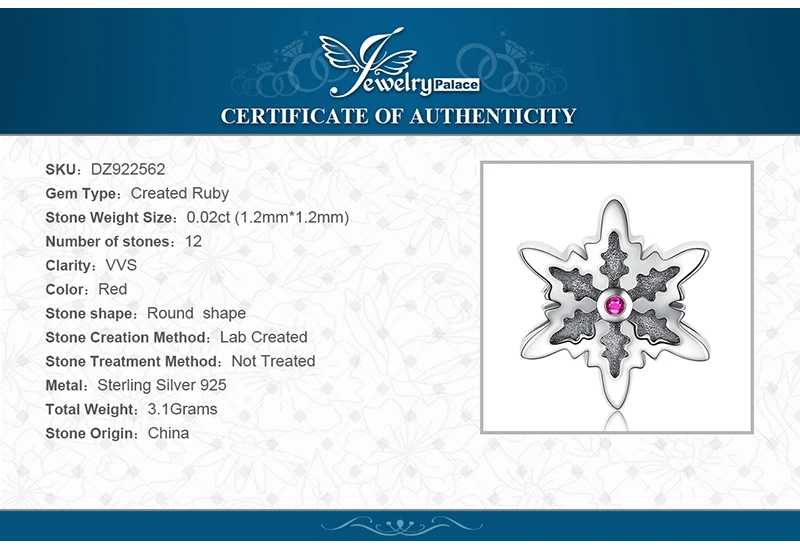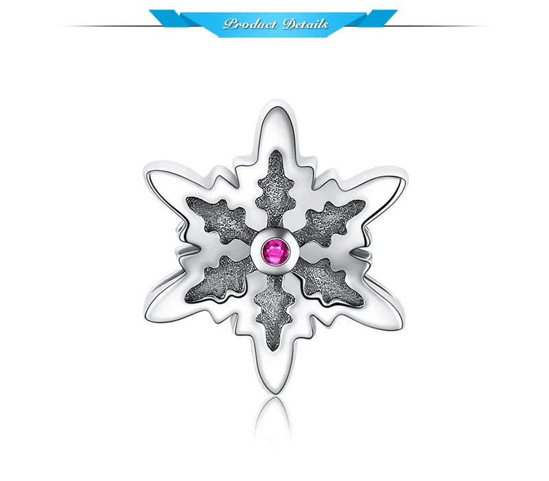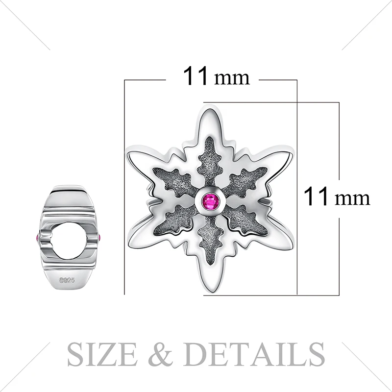 JewelryPalace Vintage Winter Love Snowflake Created Red Ruby 925 Sterling Silver Charm Beads 2018 New Hot Sale For Women As Gift