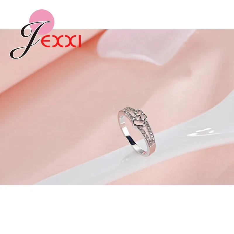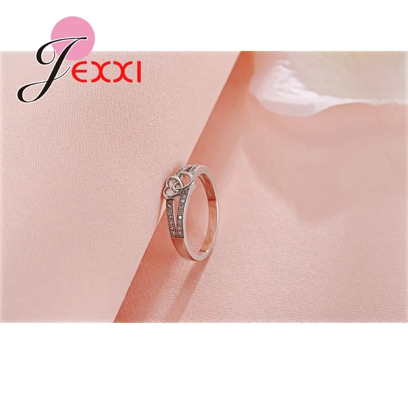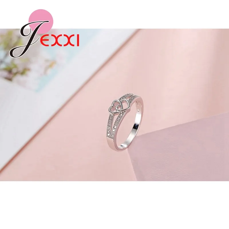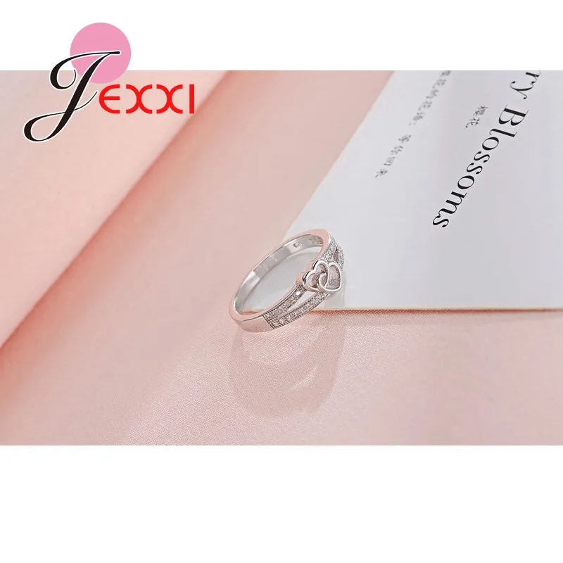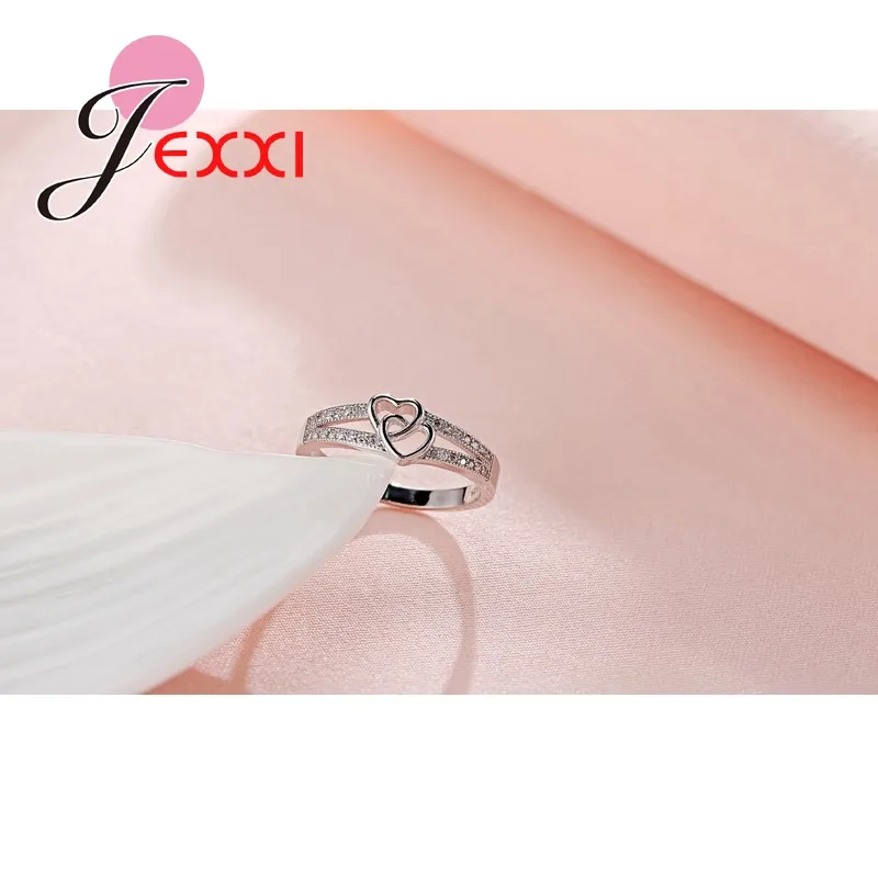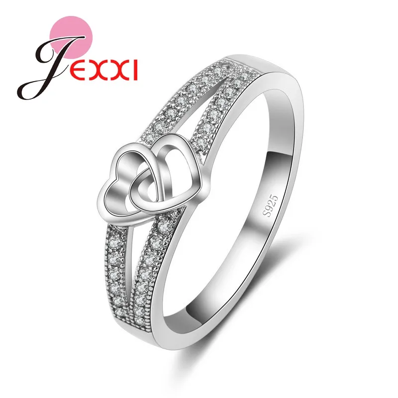 JEXXI Double Love Heart Hollow Cross Design Fashion Ring For Women/Girls With Top Quality Cubic Zirconia 925 Sterling Silver