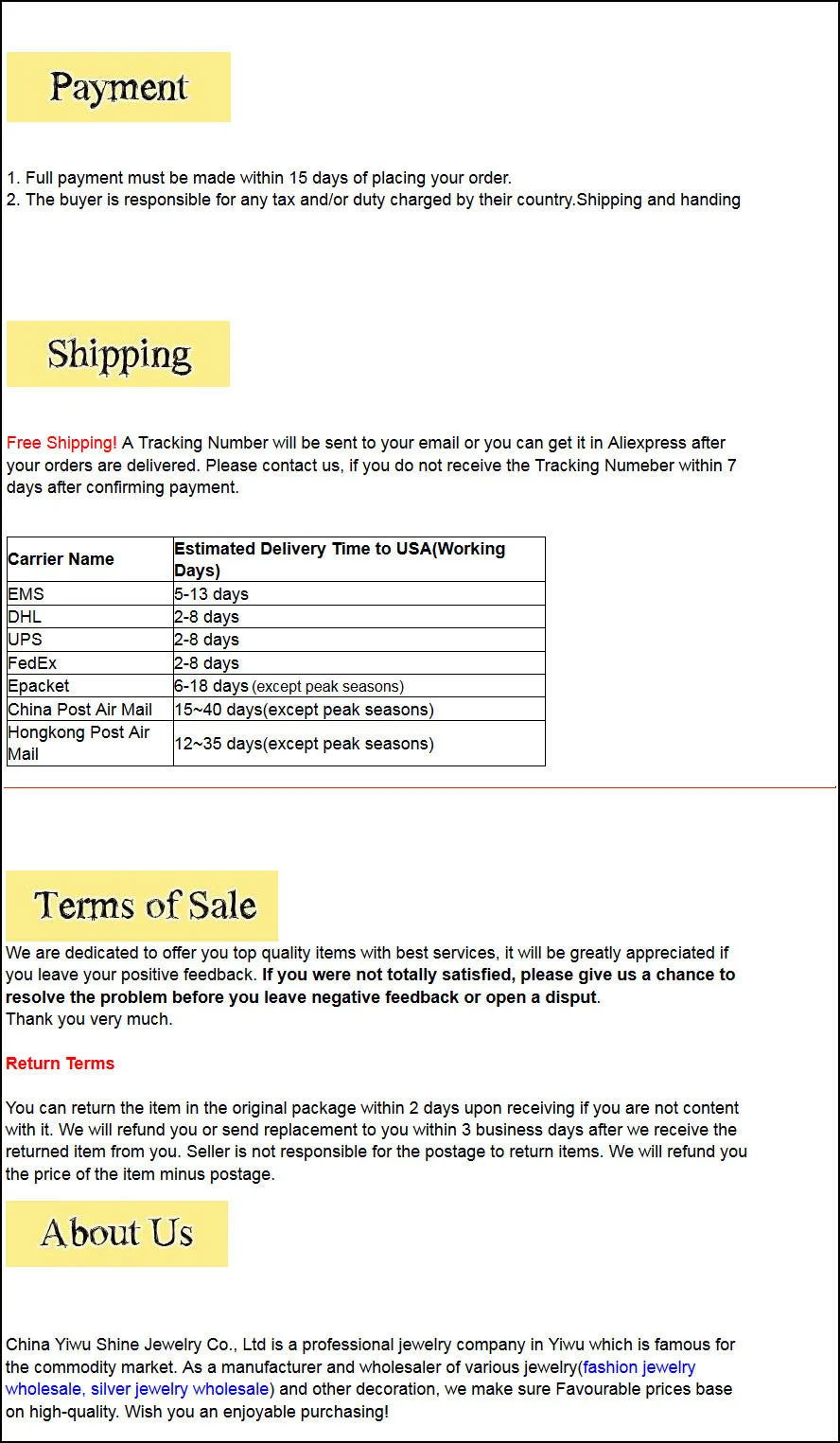 Shipping & Payment