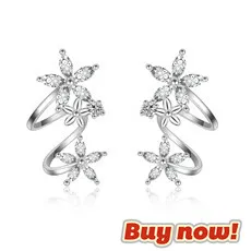 JEXXI Beautiful Maple Leaf Design Cute Silver Wedding Party Ear Accessories For Women Girls With Full Cubic Zirconia
