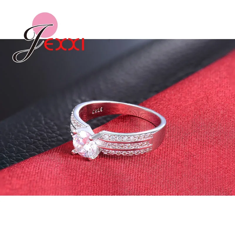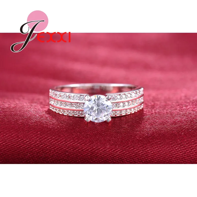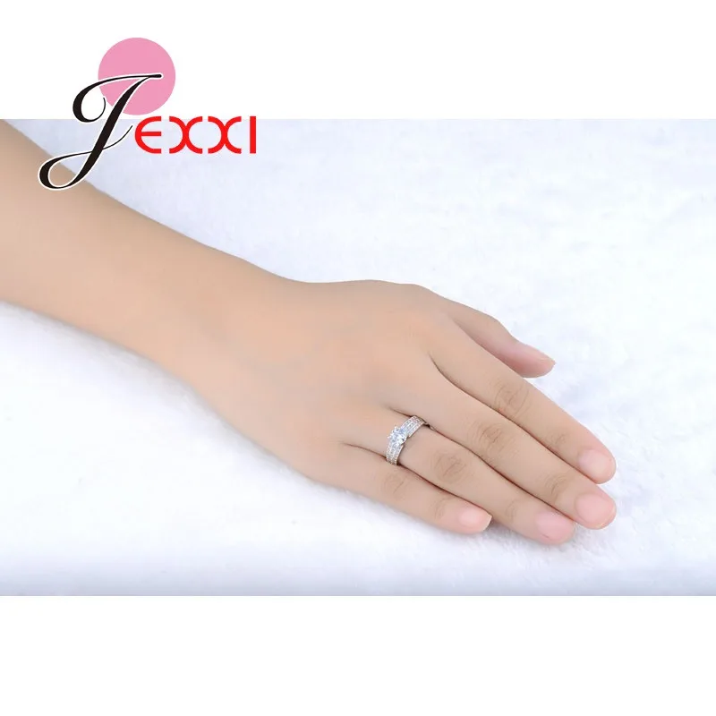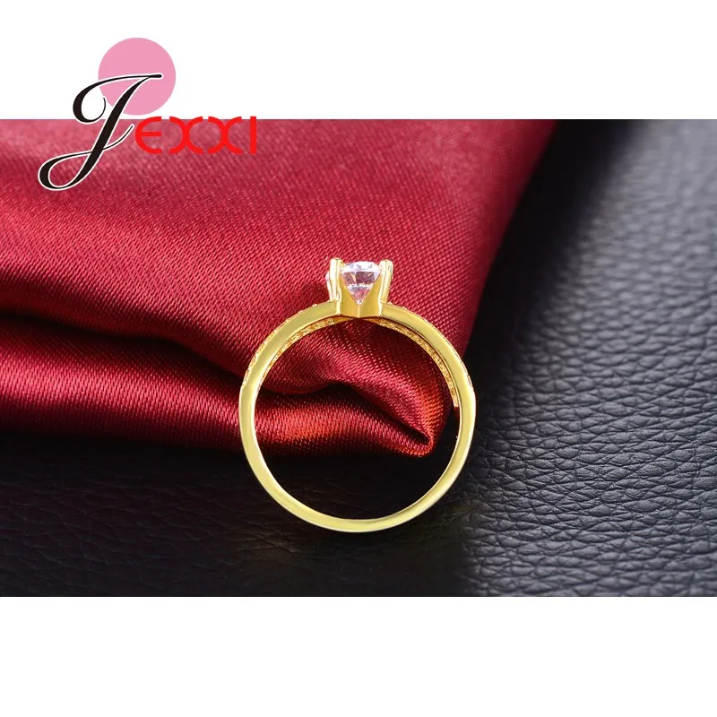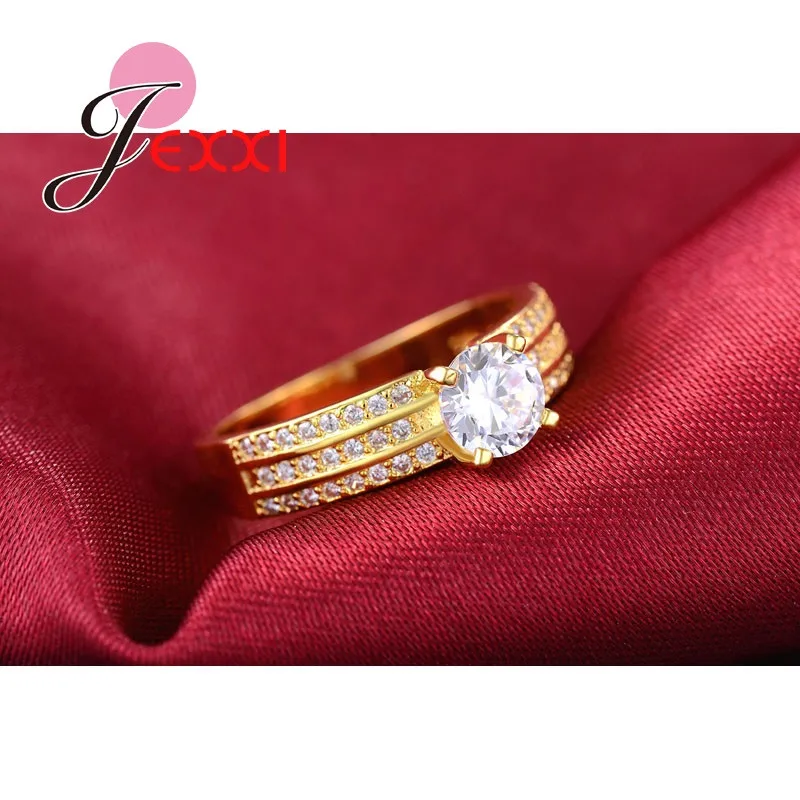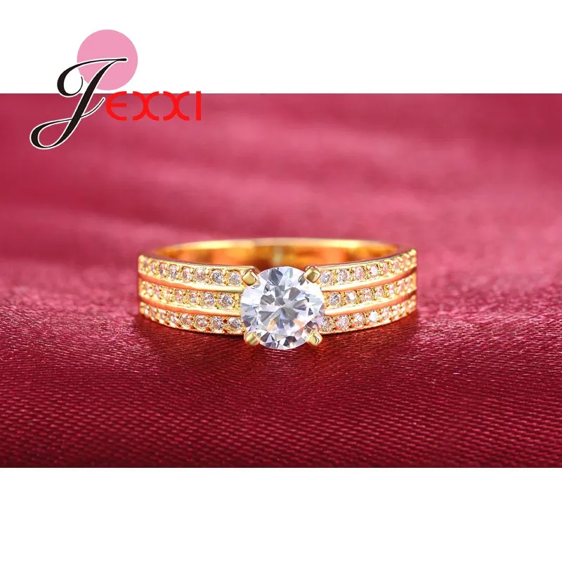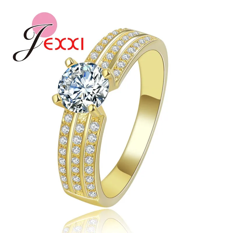 JEXXI Fashion Princess Pave Crystal Finger Ring For Women Yellow Gold Plated Cubic Zirconia Band Wedding Jewelry Wholesale Gift