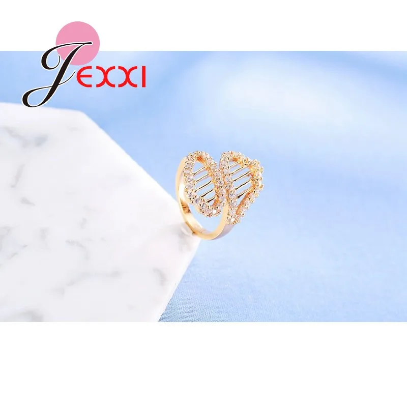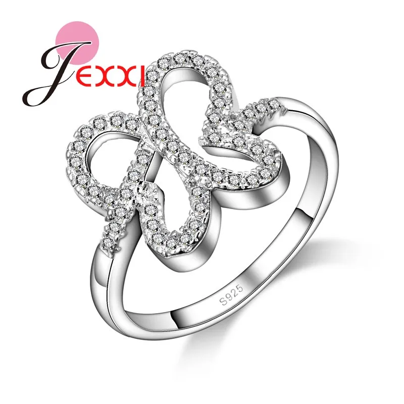 JEXXI Wholesale Newest Women Crystal Hollow Butterfly Pretty Rings 2016 Free Shipping 925 Sterling Silver CZ Diamond Ring