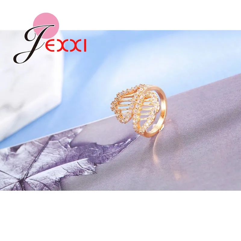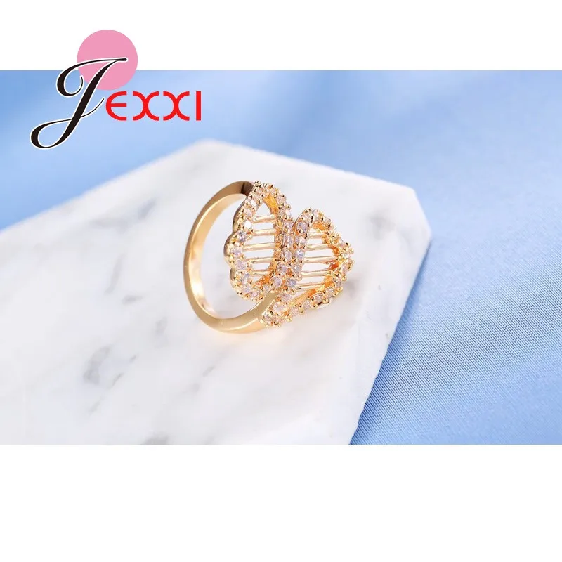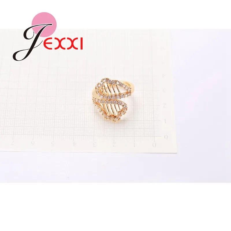 JEXXI Female Jewelry Lovely Hollow Leaf Design Rings Shining Yellow Gold Color Wedding Engagement Bride Ring Accessory