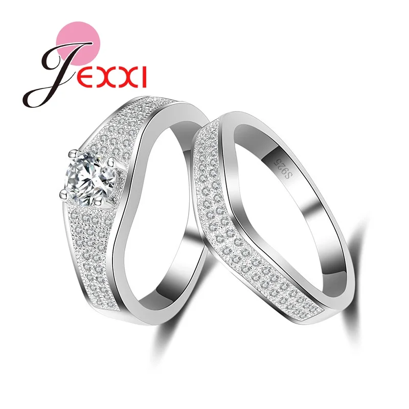 JEXXI New Top 925 Sterling Silver Rings Set Pure Silver CZ Diamond Rings For Women Wedding Engagement Jewelry Findings