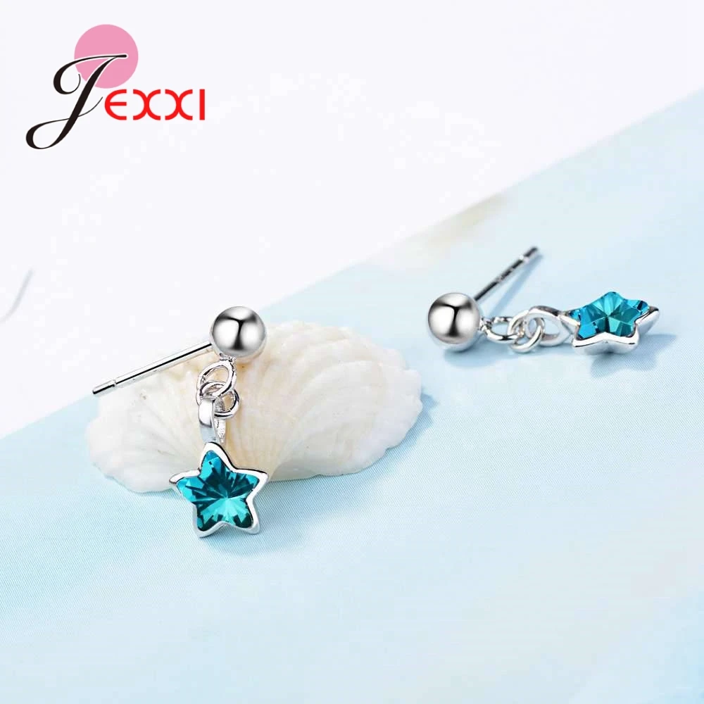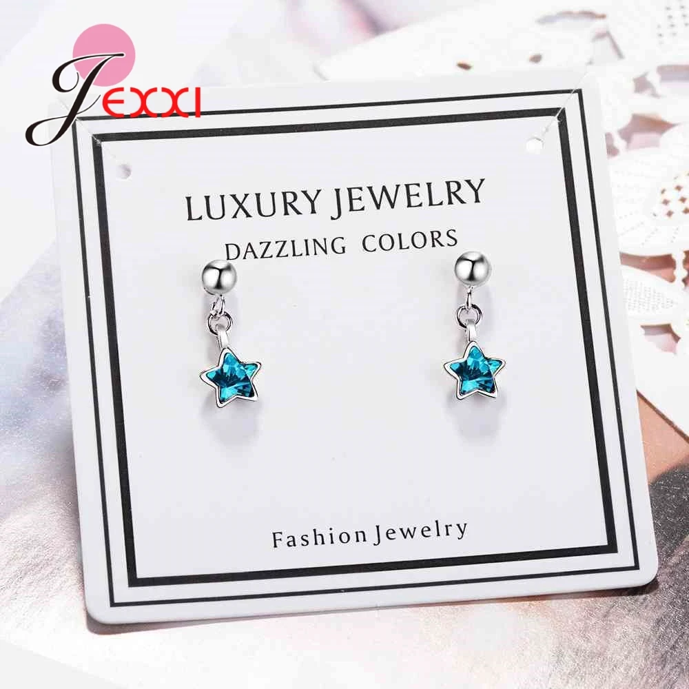 JEXXI High Quality Charming Austrian Crystal Star Pendant Earrings 925 Sterling Silver Big Promotion Women Engagement Jewelry