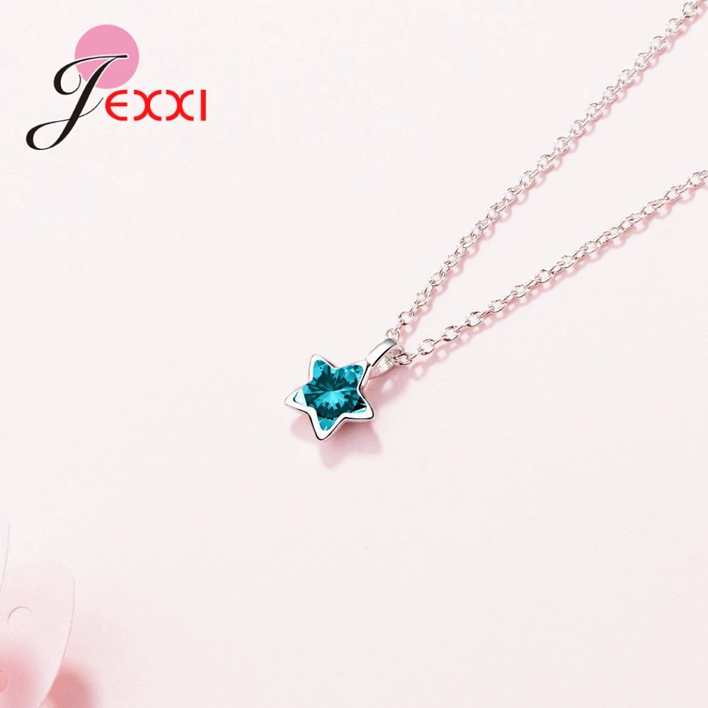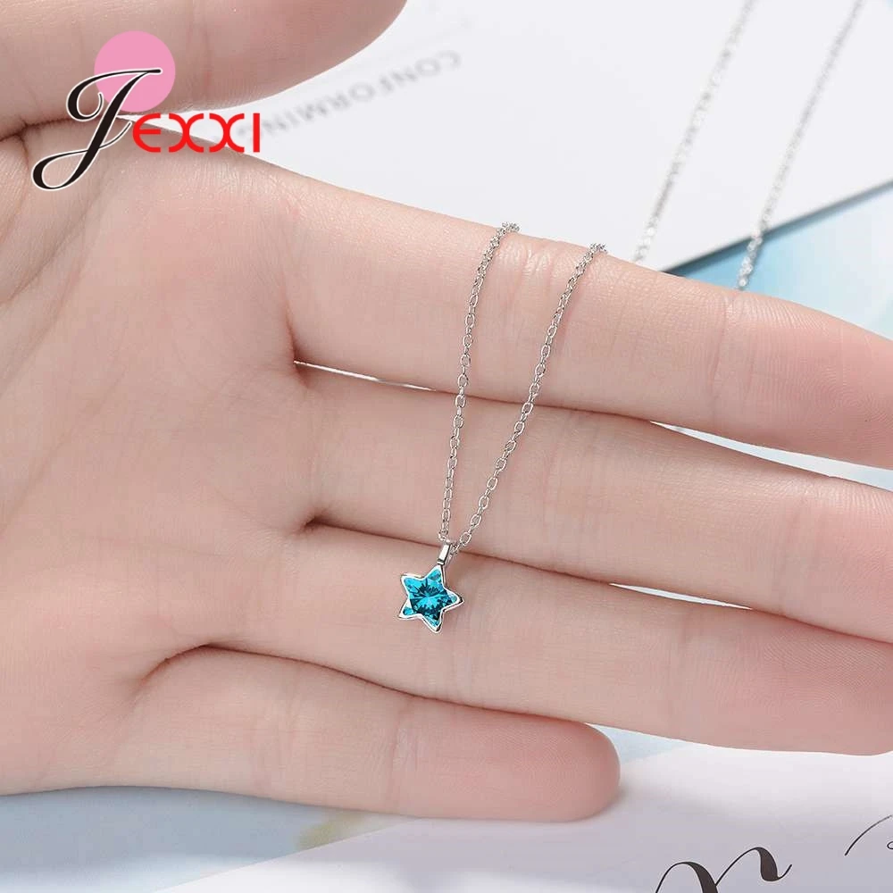 JEXXI High Quality Clear Bule Cubic Zircon Lovely Star Shape Women Girls 925 Sterling Silver Pendant Necklace Women Jewelry Gift
