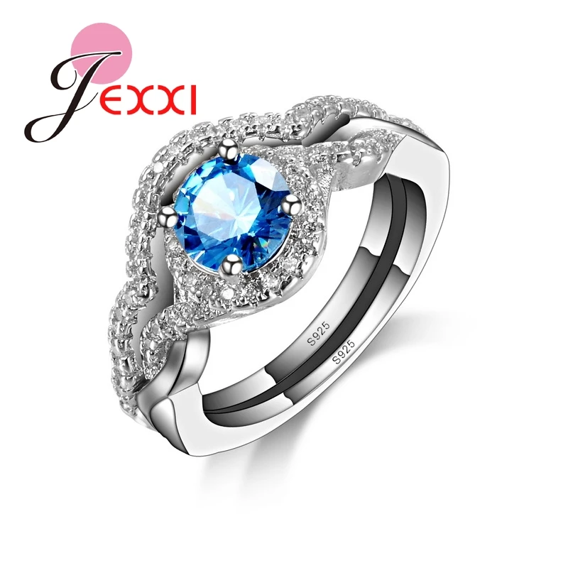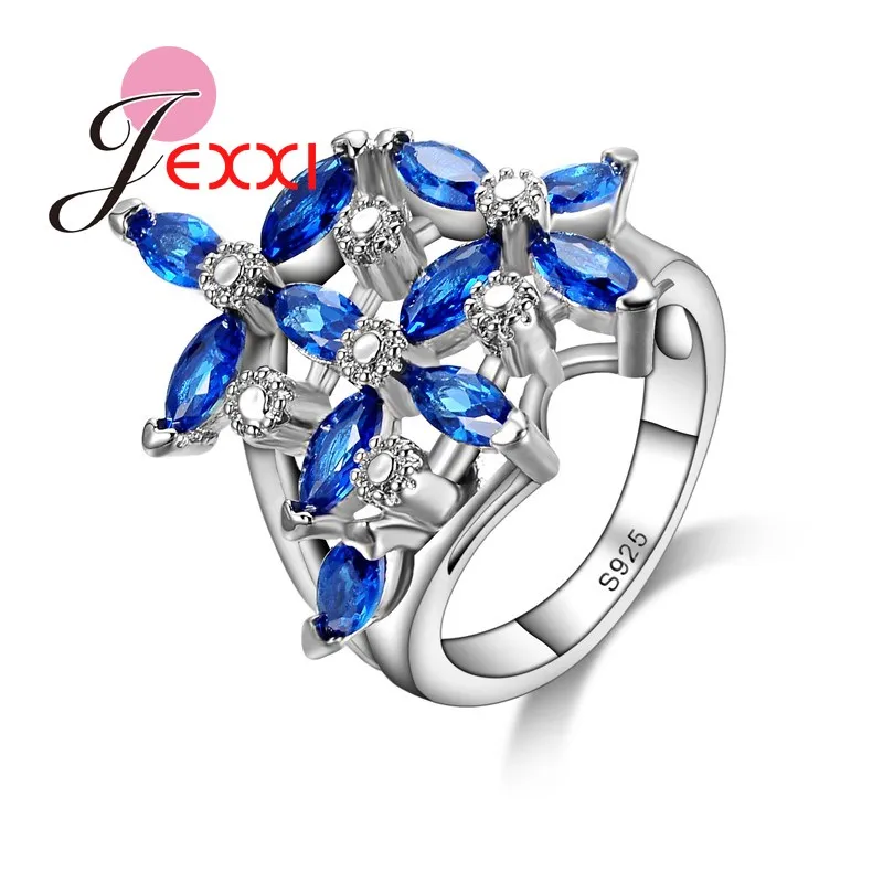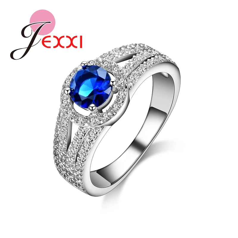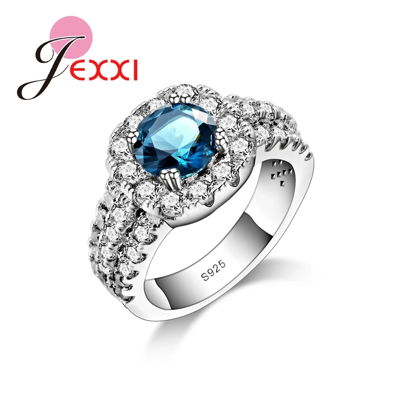JEXXI Fashion Women Luxury Cubic Zircon Rings Blue Crystal 925 Sterling Silver CZ Diamond Finger Ring Women Beactiful Jewelry