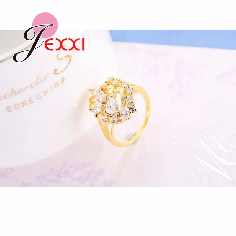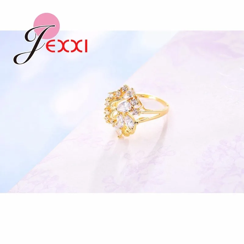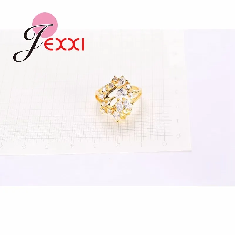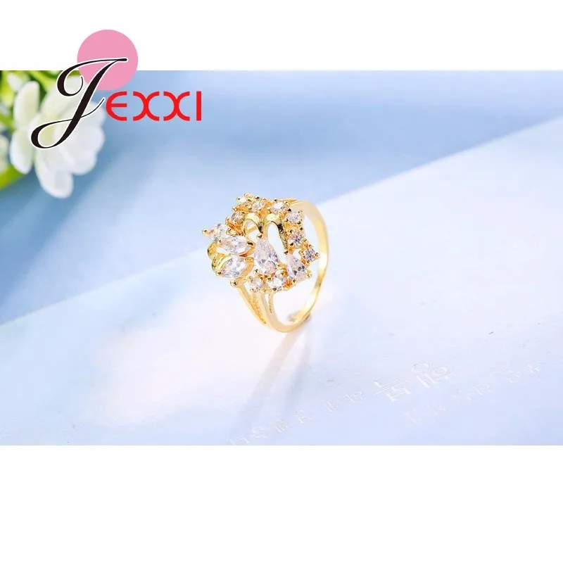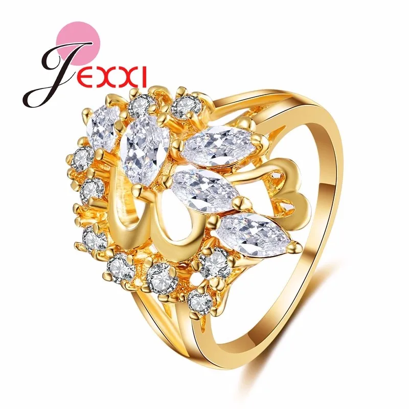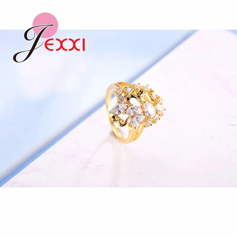 JEXXI Leaves Style Gold Filled Rings For Women Cubic Zirconia Crystal Ring Luxury Wedding Fashion Jewelry Engagement Rings