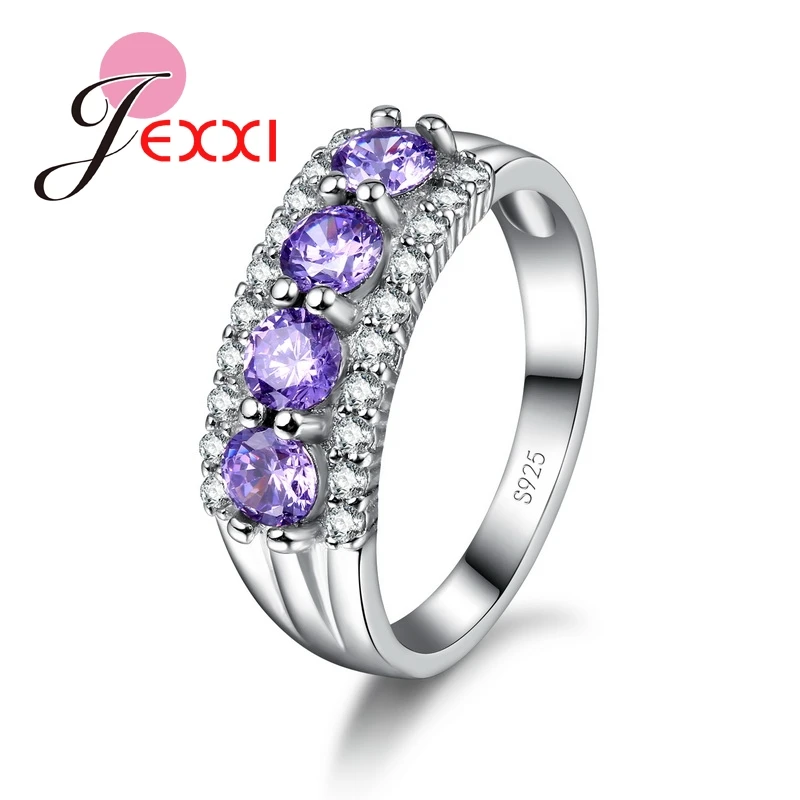 JEXXI Colorized Cubic Zirconia Top Quality Women Fashion Jewelry 925 Sterling Silver Wedding Party Finger Rings Accessories