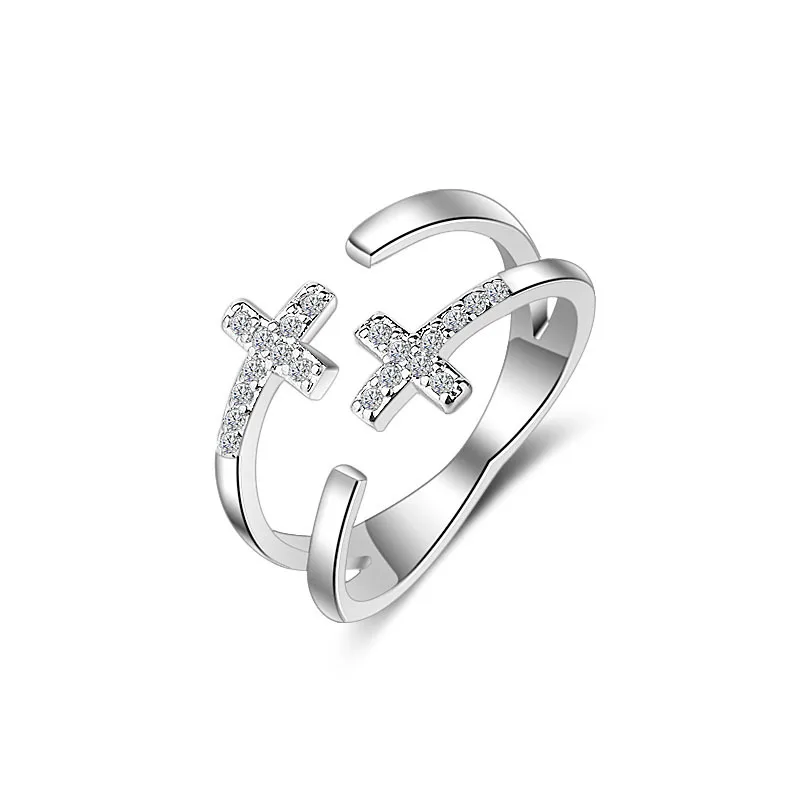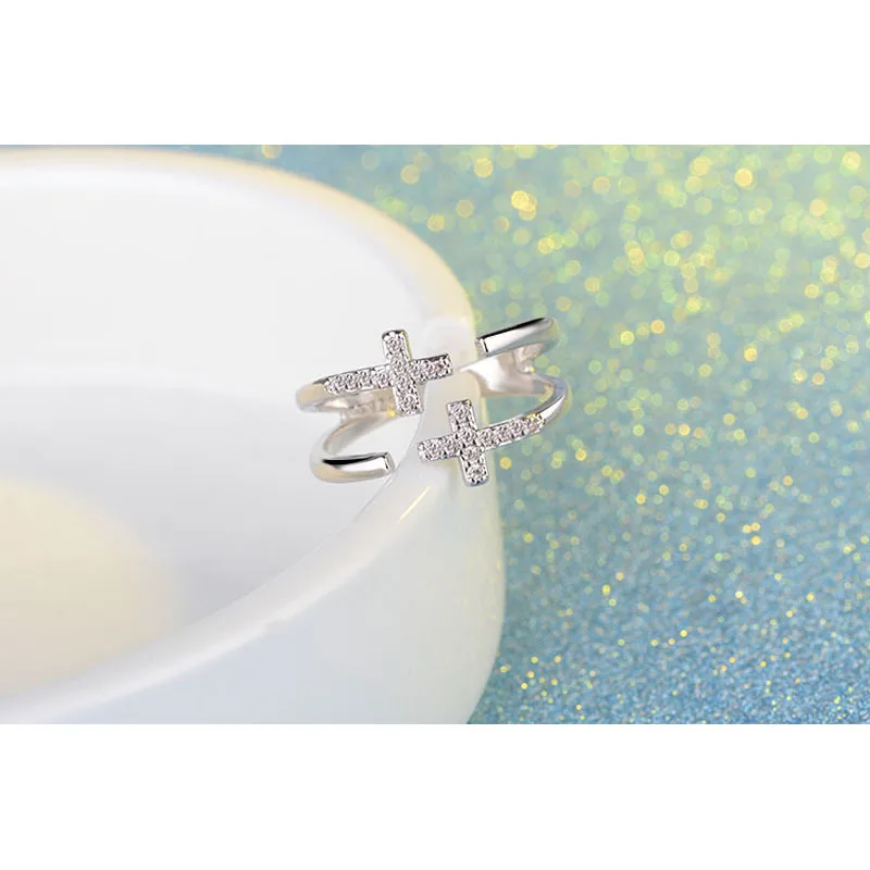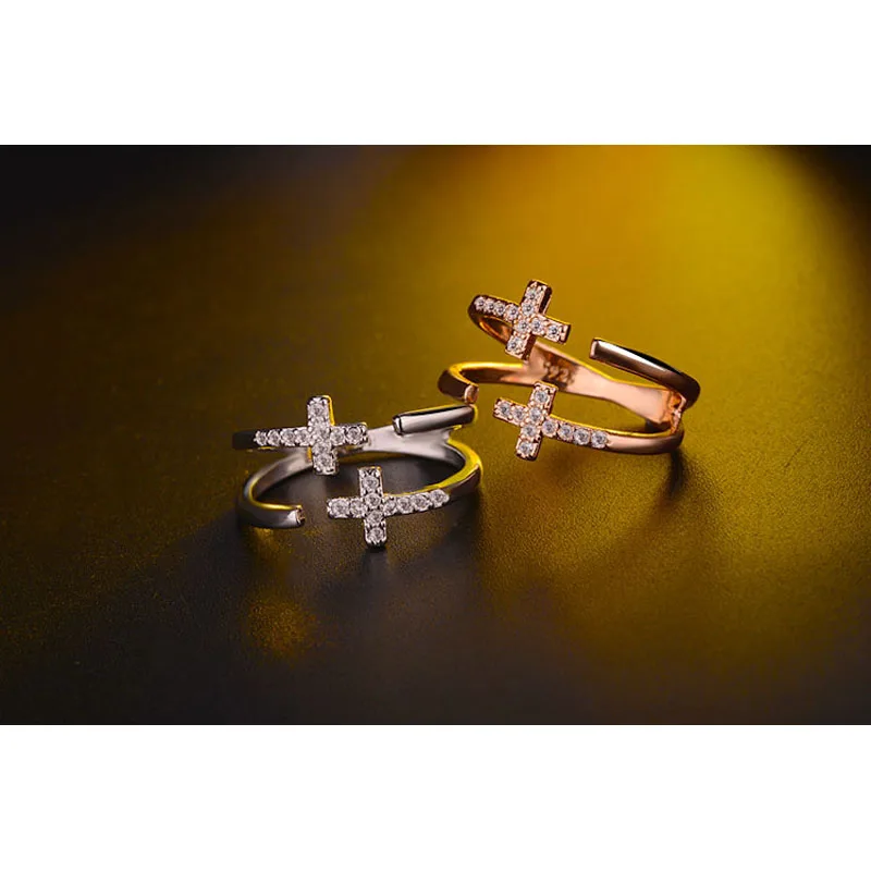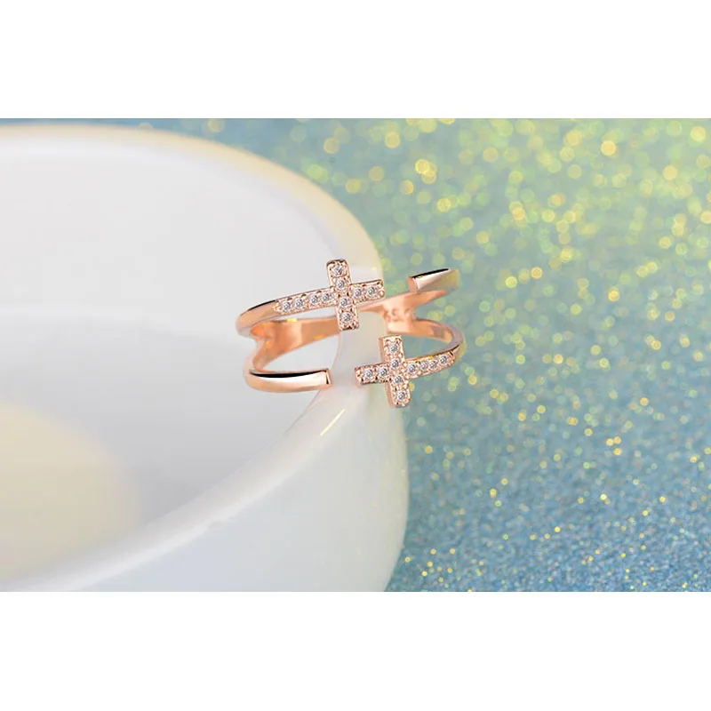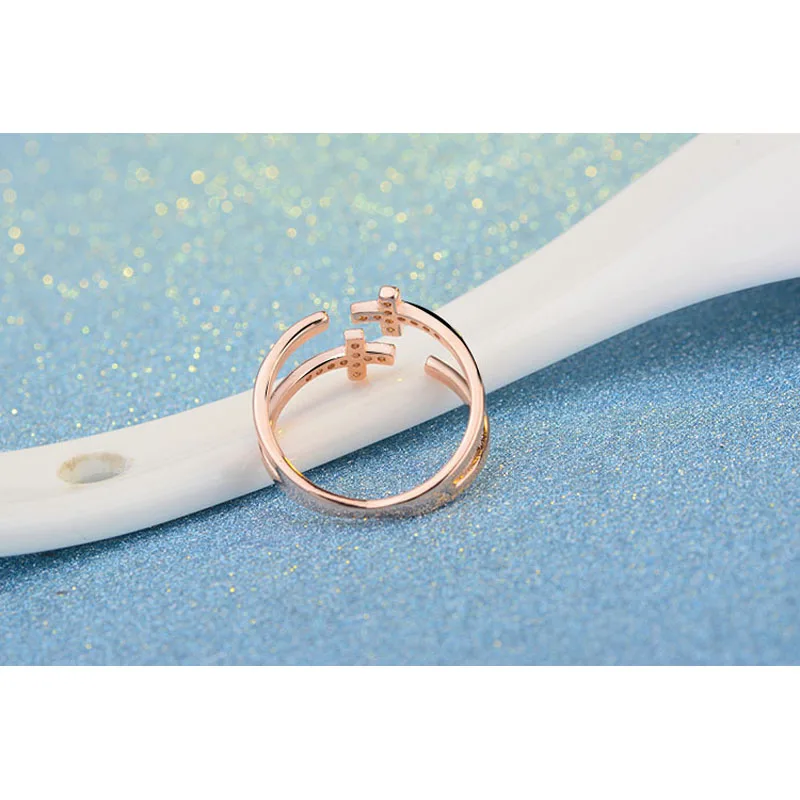JEXXI Promotion Female Girls Geometric Ring White/Rose Gold Color Cross Crystal Style Adjust Rings For Women Promise Gift