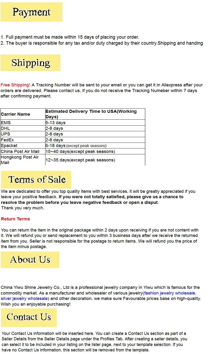 • If you did not receive the product within the guaranteed time( 45 days not including 2-5 day processing) you can request a refund or a reshipment.