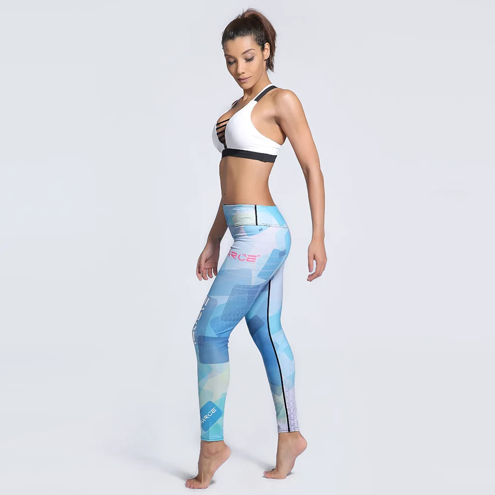 JIGERJOGER 2017 sports fitness RUNNING Leggings Blue art photographic box digital printing High rise Training exercise jeggings