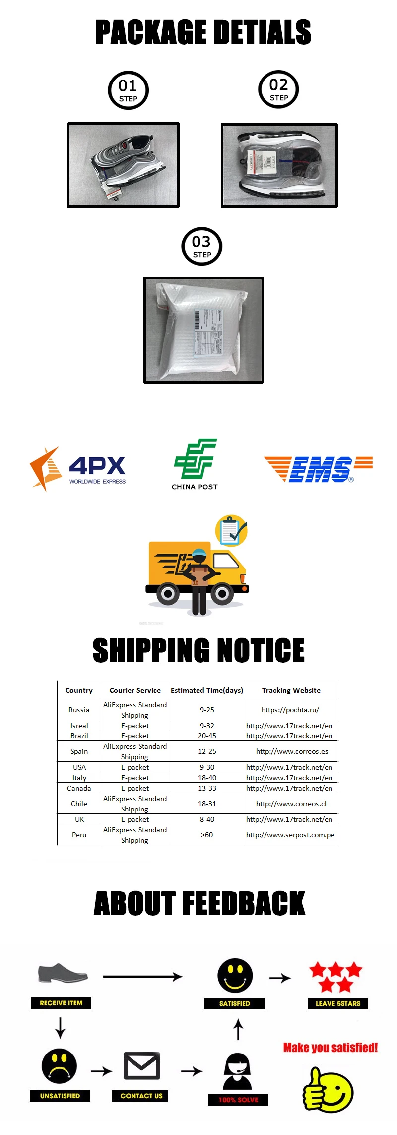 *You can submit refund requests within 15 days after the guaranteed period for delivery (45 days) has expired. You can do it by sending a message on Contact Us page