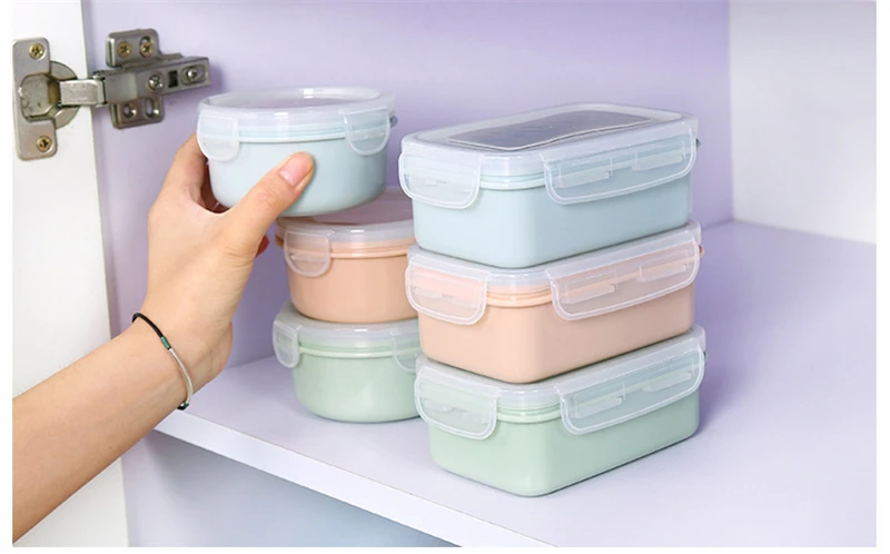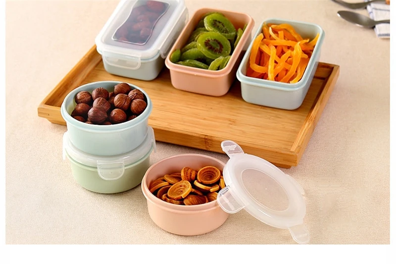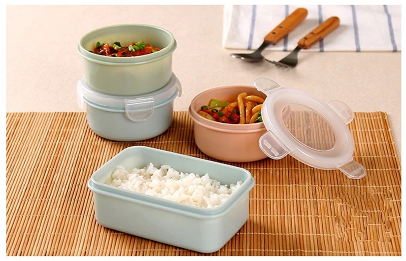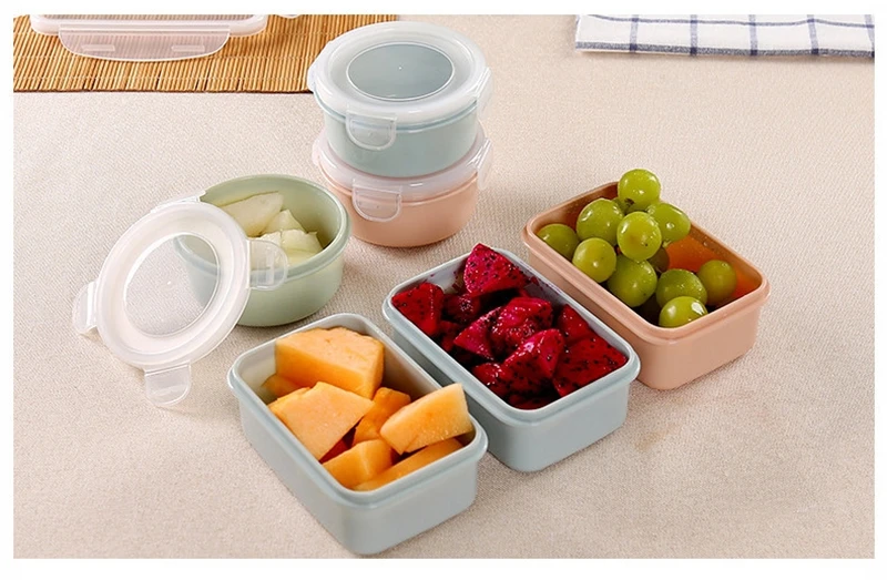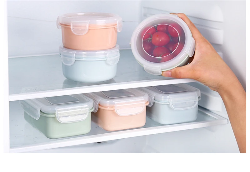 JINJIAN Round Mini Lunch Box Refrigerator Storage Box Microwave Bento Box For Kids School Picnic Food Container Dinnerware