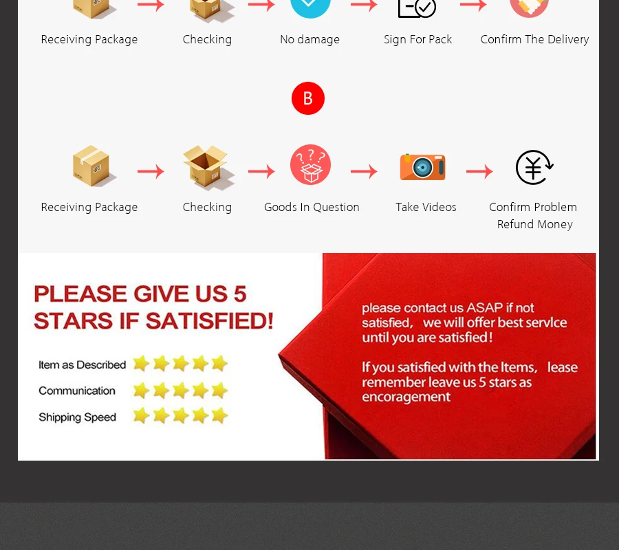 • If you received the wrong item you can request a refund or a reshipment.