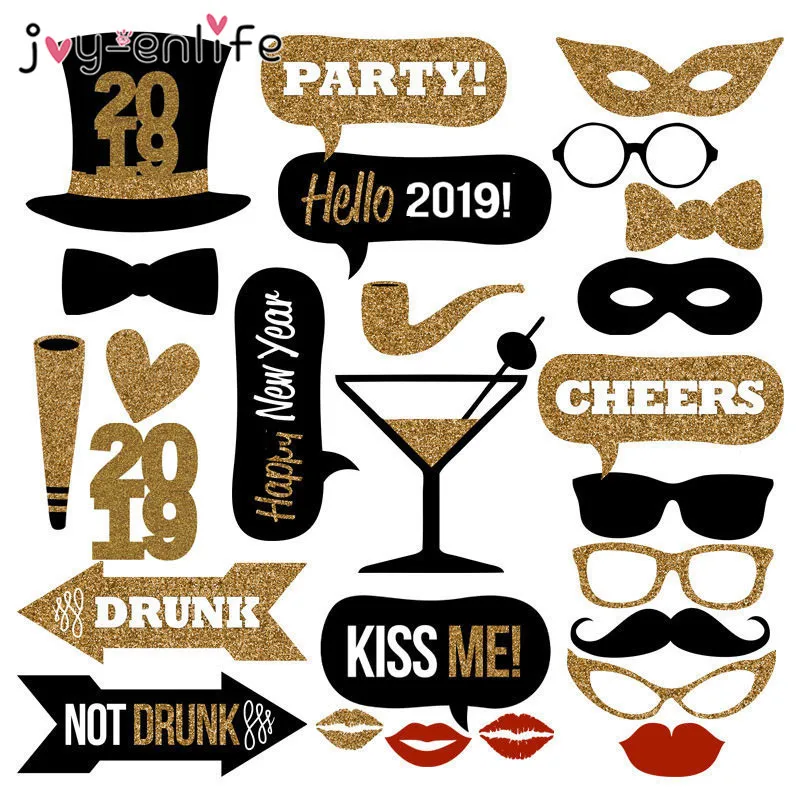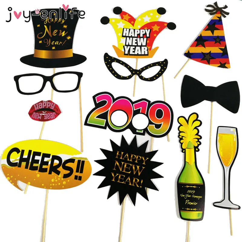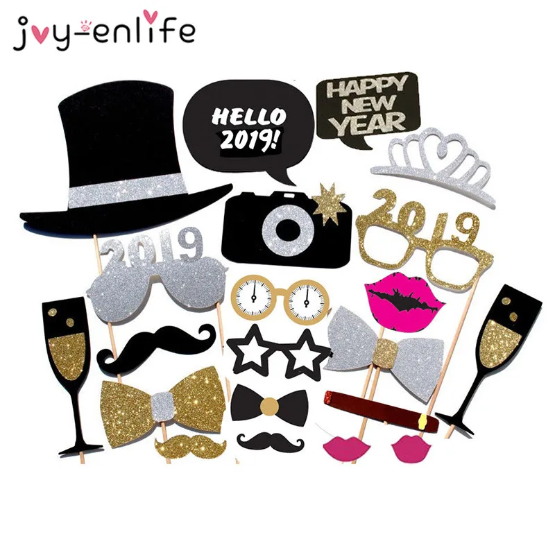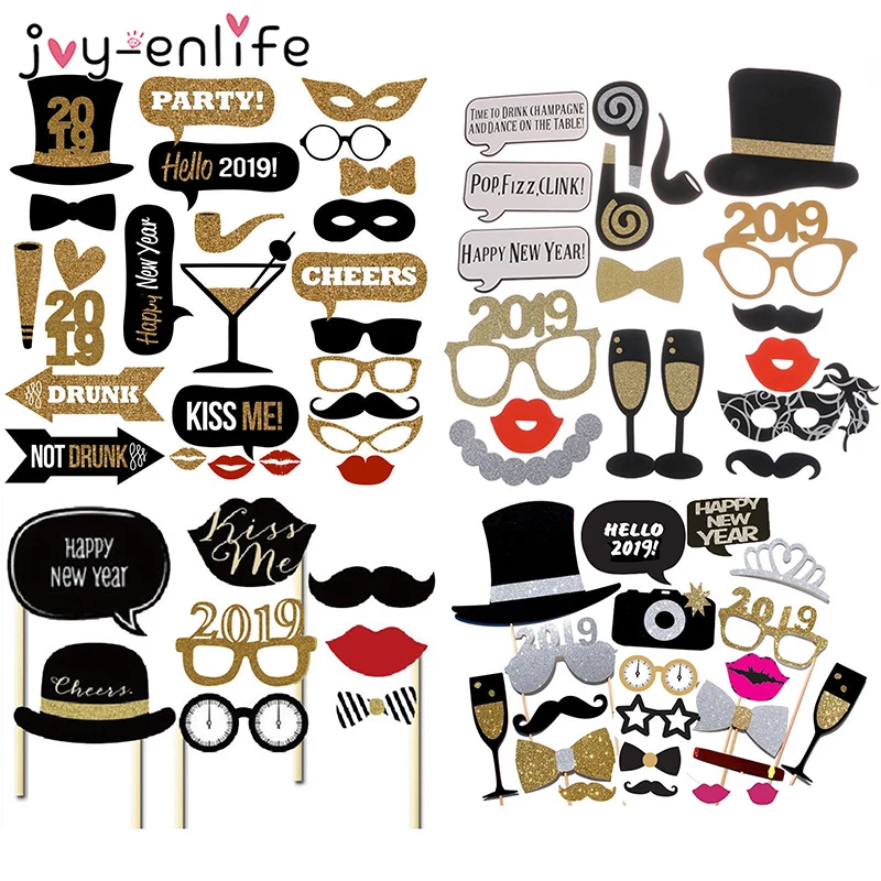 JOY-ENLIFE Happy New Year 2019 Photo Booth Props Eve Party Decoration Mascara Mask Gifts Christmas Party Decorations Supplies