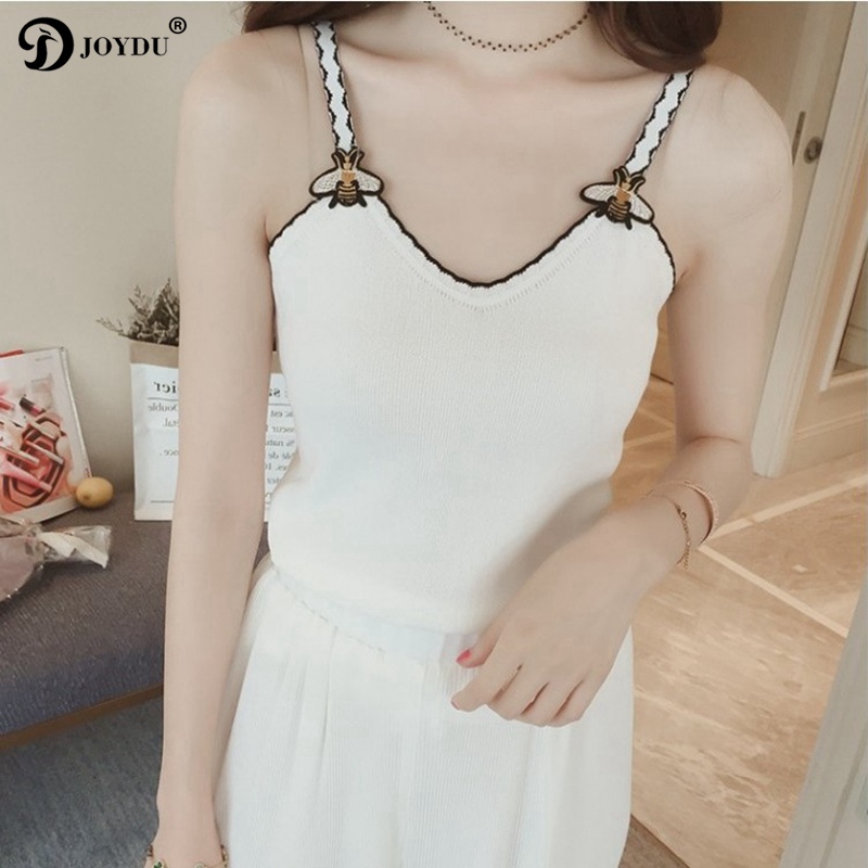 JOYDU New Korean Womens Tops And Blouses Fashion Knitted Sleeveless Runway Design Bee Embroidery Sexy Shirts camisas mujer