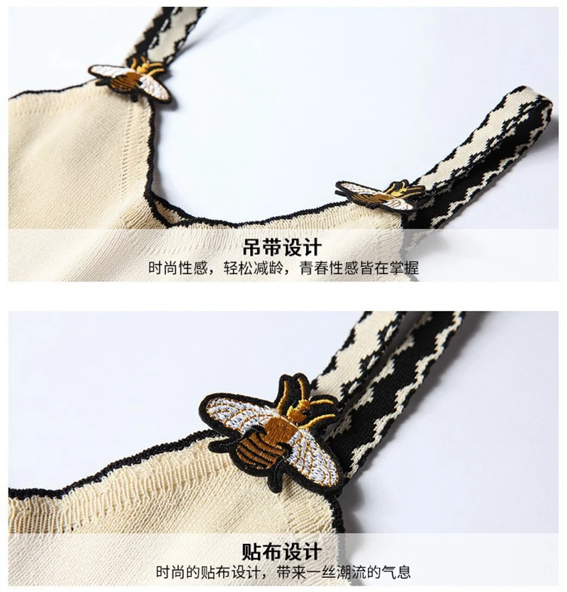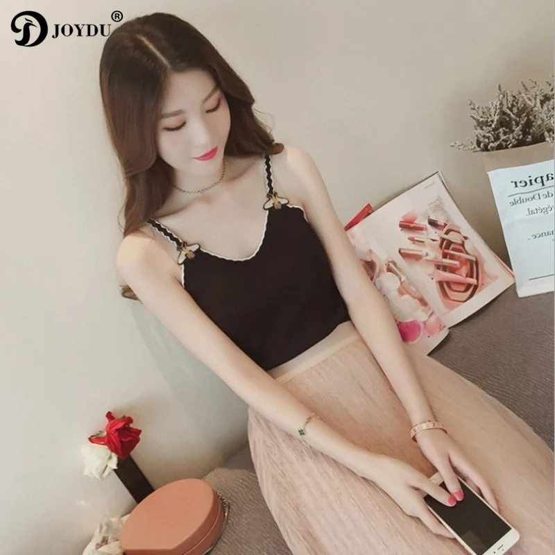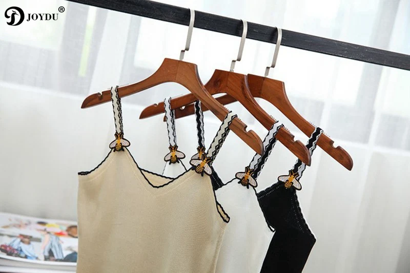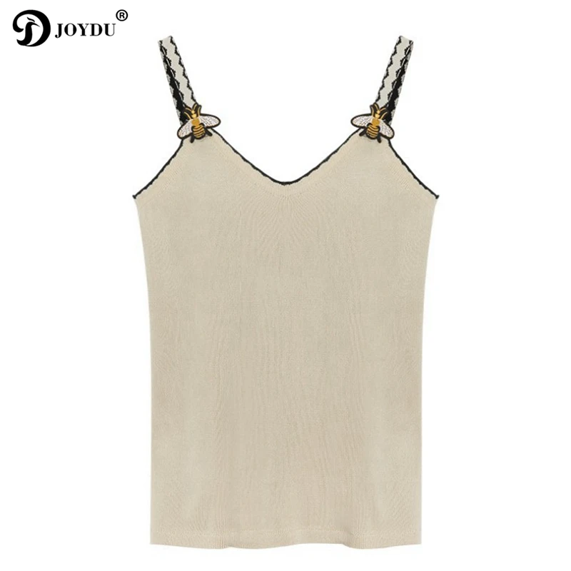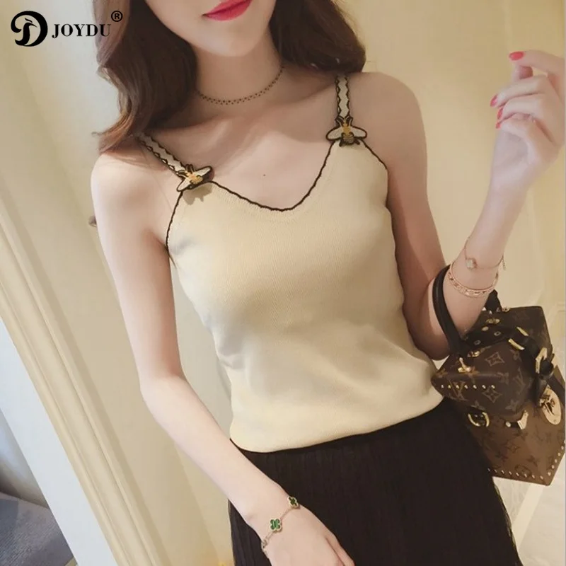 JOYDU New Korean Womens Tops And Blouses Fashion Knitted Sleeveless Runway Design Bee Embroidery Sexy Shirts camisas mujer