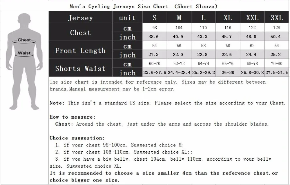 Please follow the size chart carefully when choosing your jersey.