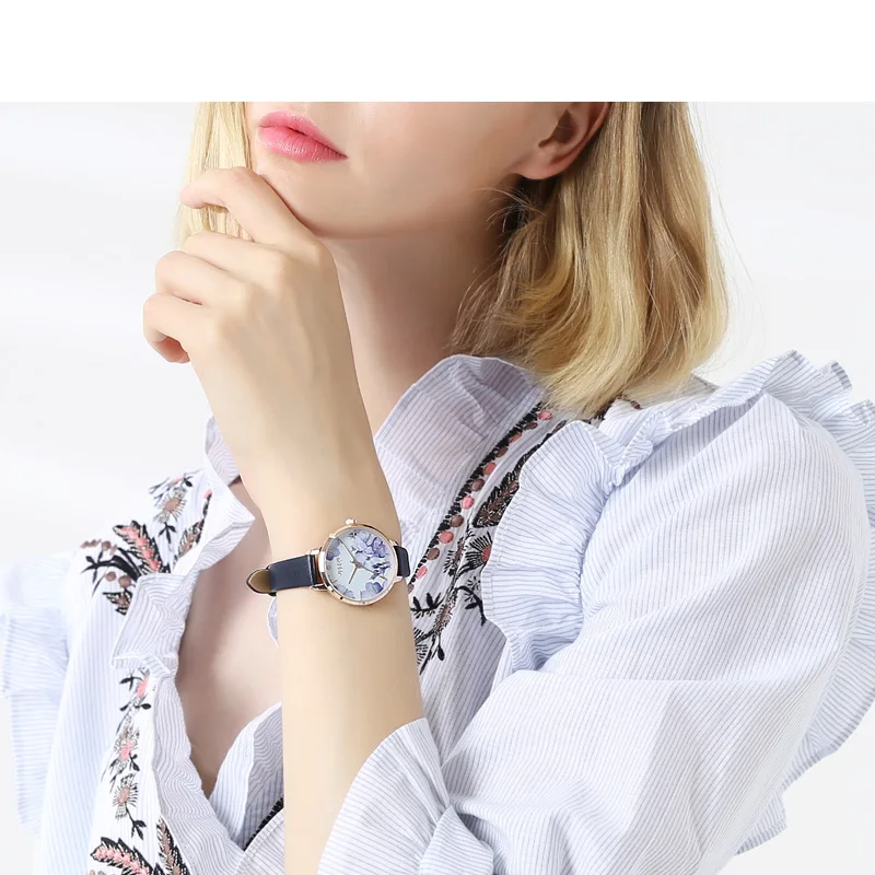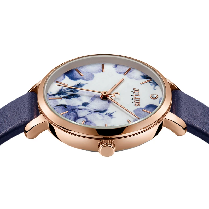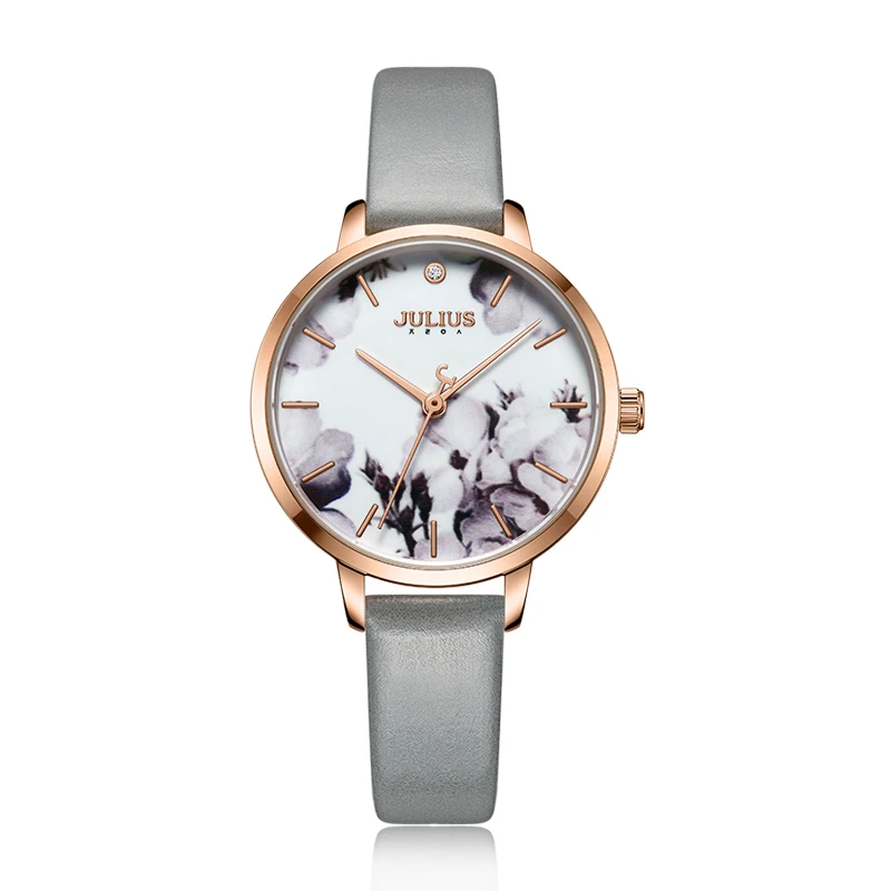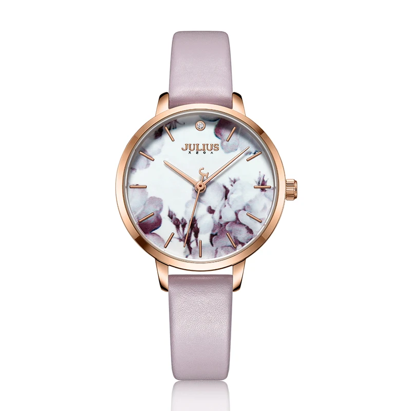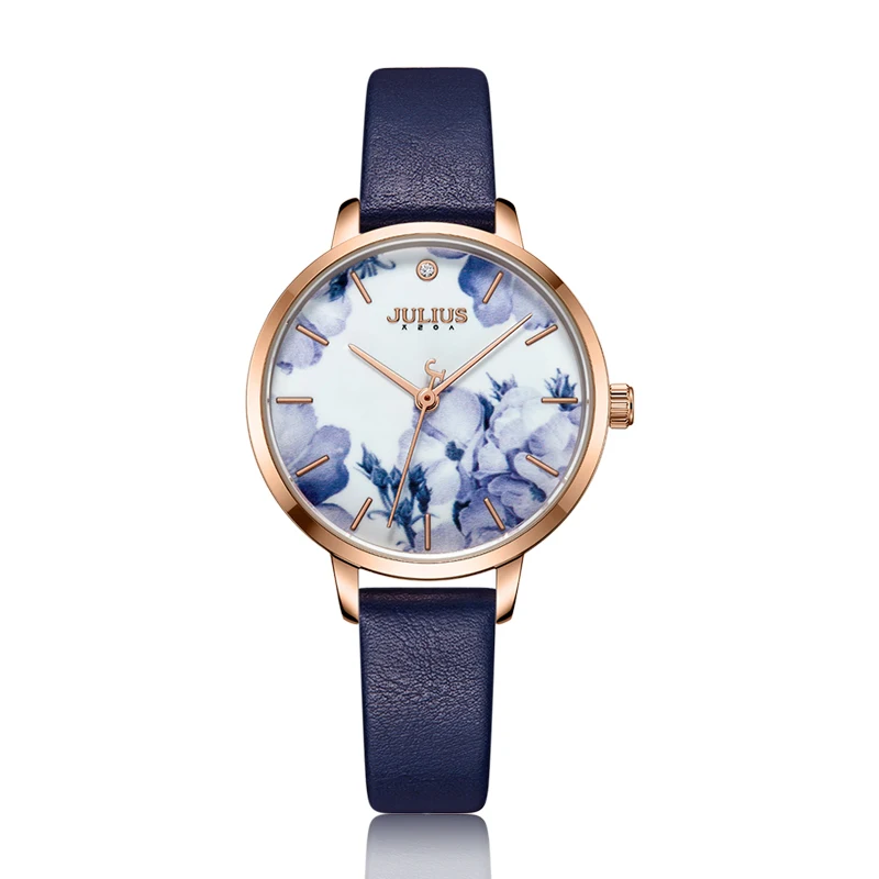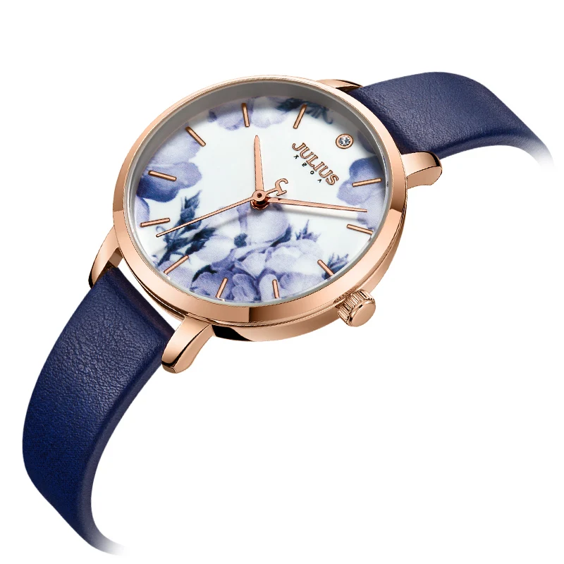 Julius Watch Fashion Elegant Quartz Women Leather Bracelet Watch Flower Dial Design Marque De Luxe Original Watch Clock JA-1101