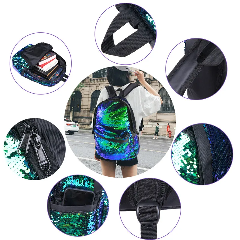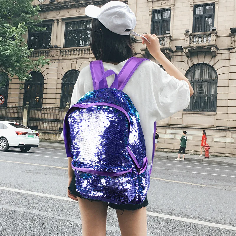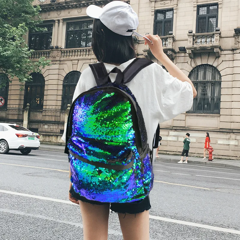JULY’S SONG Glitter Sequins Backpack Girls Fashion Bling Schoolbag Large Capacity Women Travel Leisure Backpack Shoulder Bags