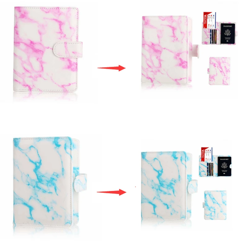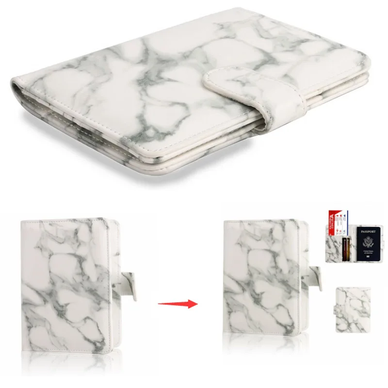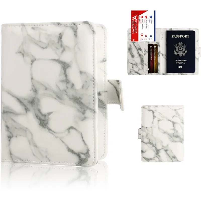 JULY’S SONG Marbled RFID Passport Bag Leather Passport Holder Passport Cover Documents Bag Multi-Pocket Travel Card Holder Case
