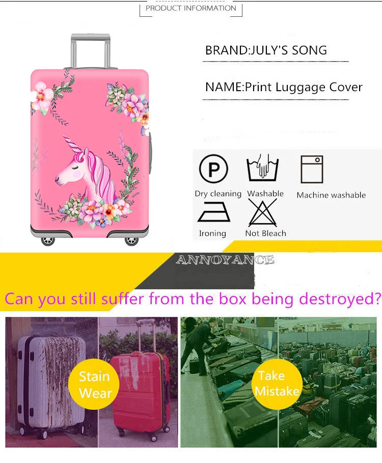 JULY’S SONG Unicorn Luggage Protective Cover For 18-32 inch Trolley Suitcase Protect Dust Bag Case Cartoon Travel Accessories