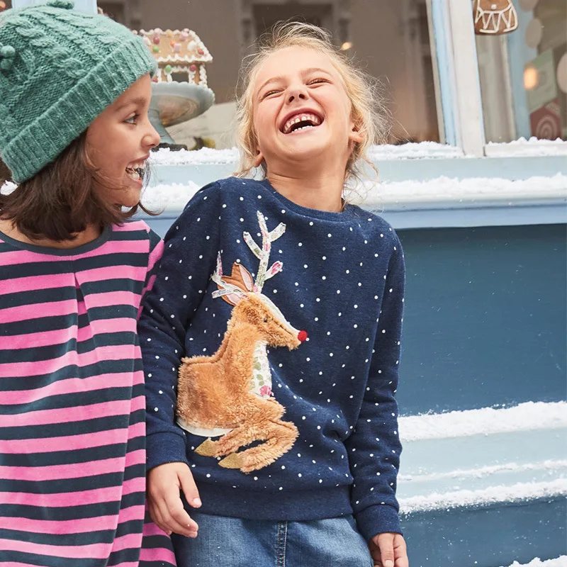 Jumping Meters Girls Hoodies Baby Girl Winter Clothes 2018 Brand Kids Hoodies for Girls Sweatshirt with Animal Applique 2-7years