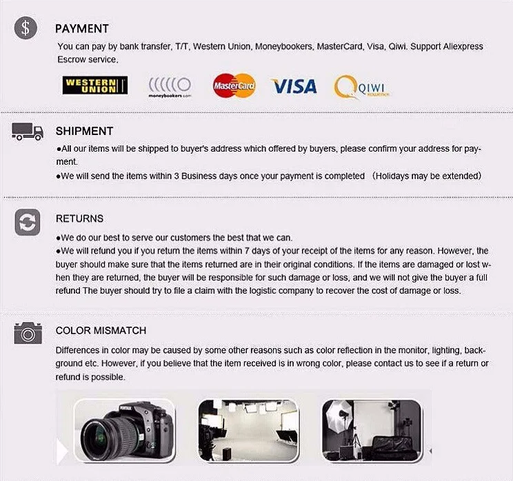Attention: Produit expédié sous 24 heures. s’il vous plaît être sûr que les informations de commande sont correcte avant achat que l’information ne peut pas être changé après l’achat. nous vous remercions pour votre compréhension.
