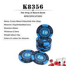 K8356 25PCS/Lot 14g Crown Wheat PokerClub Film Chips Coins Baccarat Texas Hold’em Double Color Crown Clay Poker Playing Chips