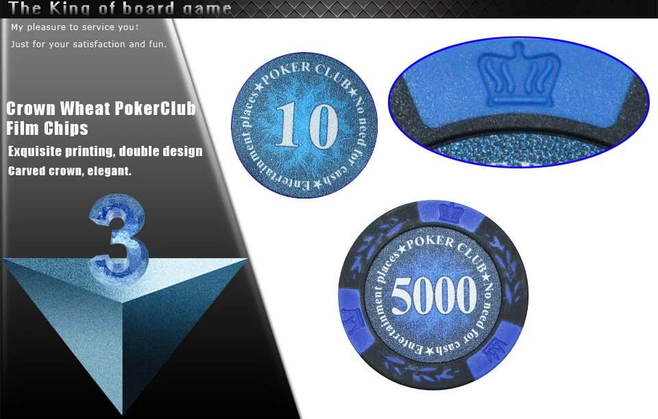 K8356 25PCS/Lot 14g Crown Wheat PokerClub Film Chips Coins Baccarat Texas Hold’em Double Color Crown Clay Poker Playing Chips